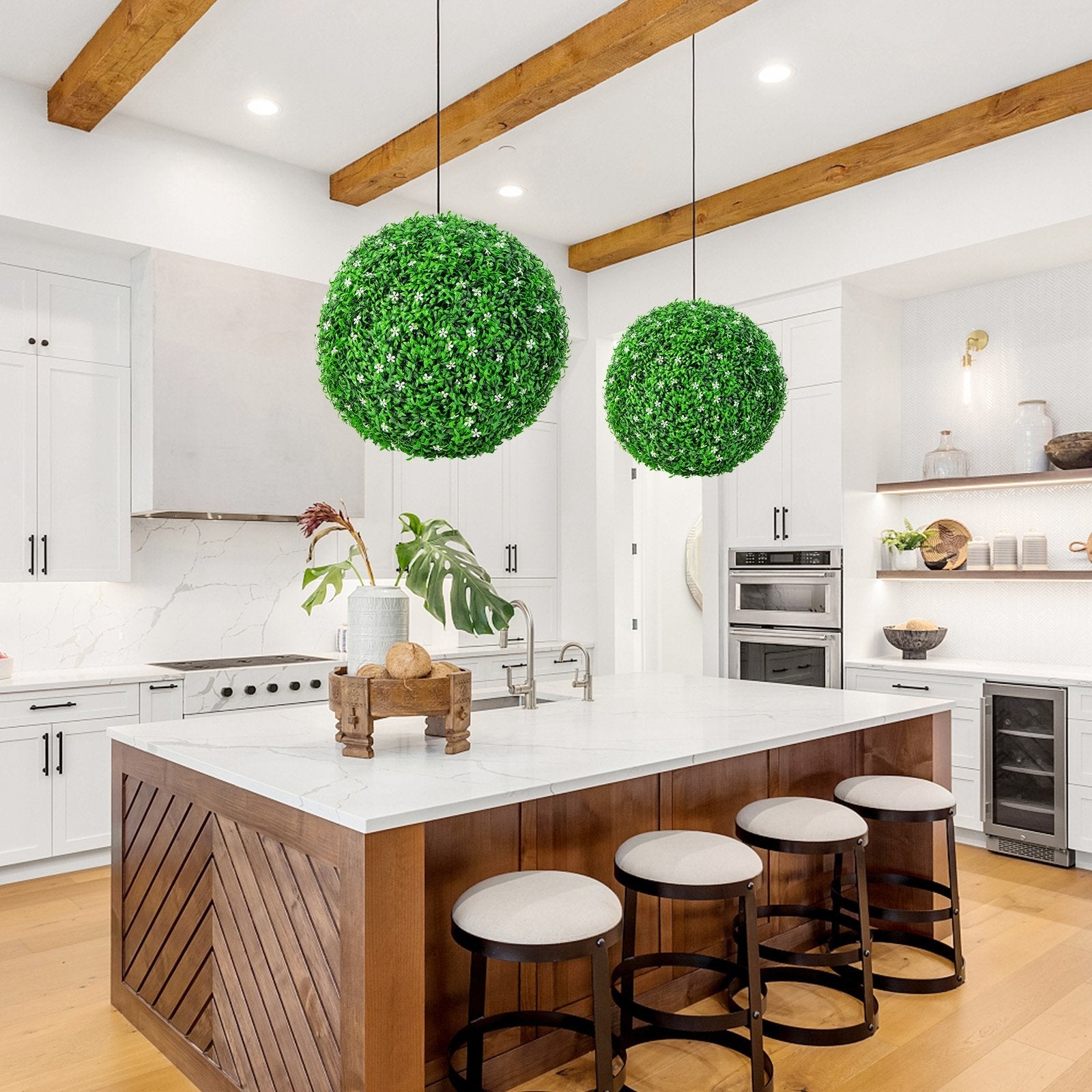 ● Vivid Leaves and Flowers: Each artificial topiary ball will impress you by greenery look which is embellished by delicate white flowers. In details its outer leaves feature 3 layers in total and measure 2" tall basically taller than others and much more lifelike.