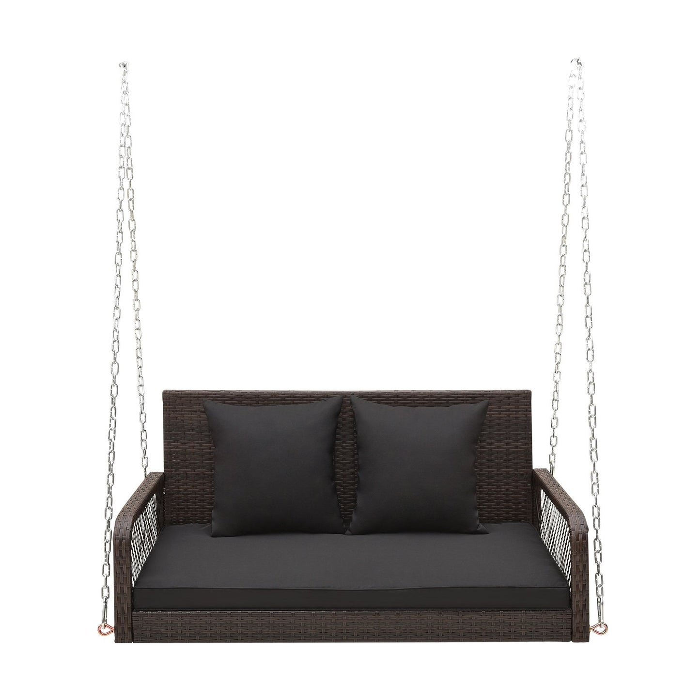2-Person Outdoor Wicker Porch Swing with Seat and Back Cushions-Beige
