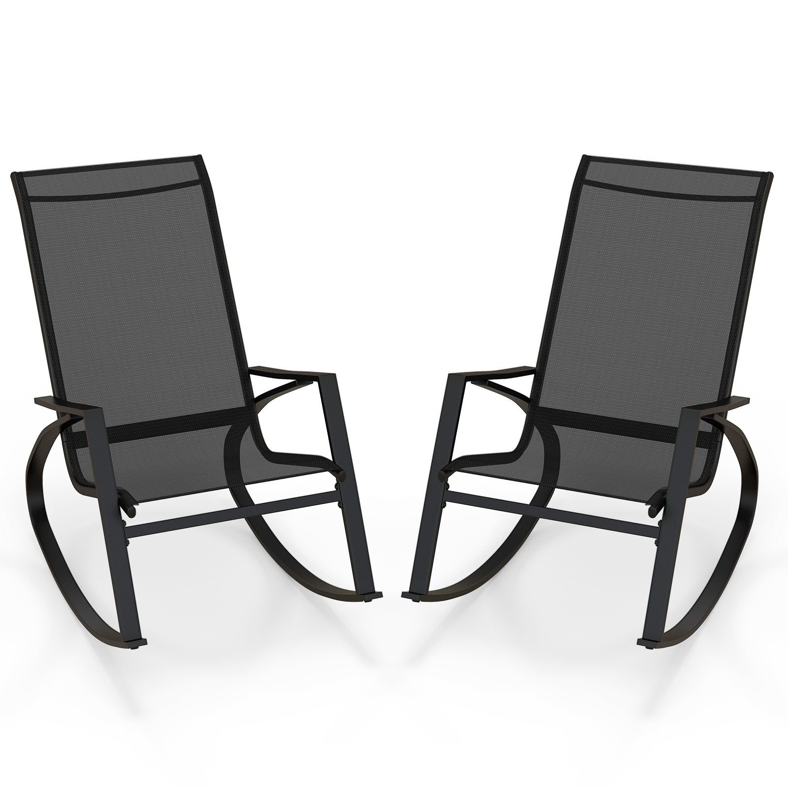 2 Pieces Patio Rocking Chairs Outdoor Sling Fabric Rockers with Ergonomic Backrest and Seat-Black