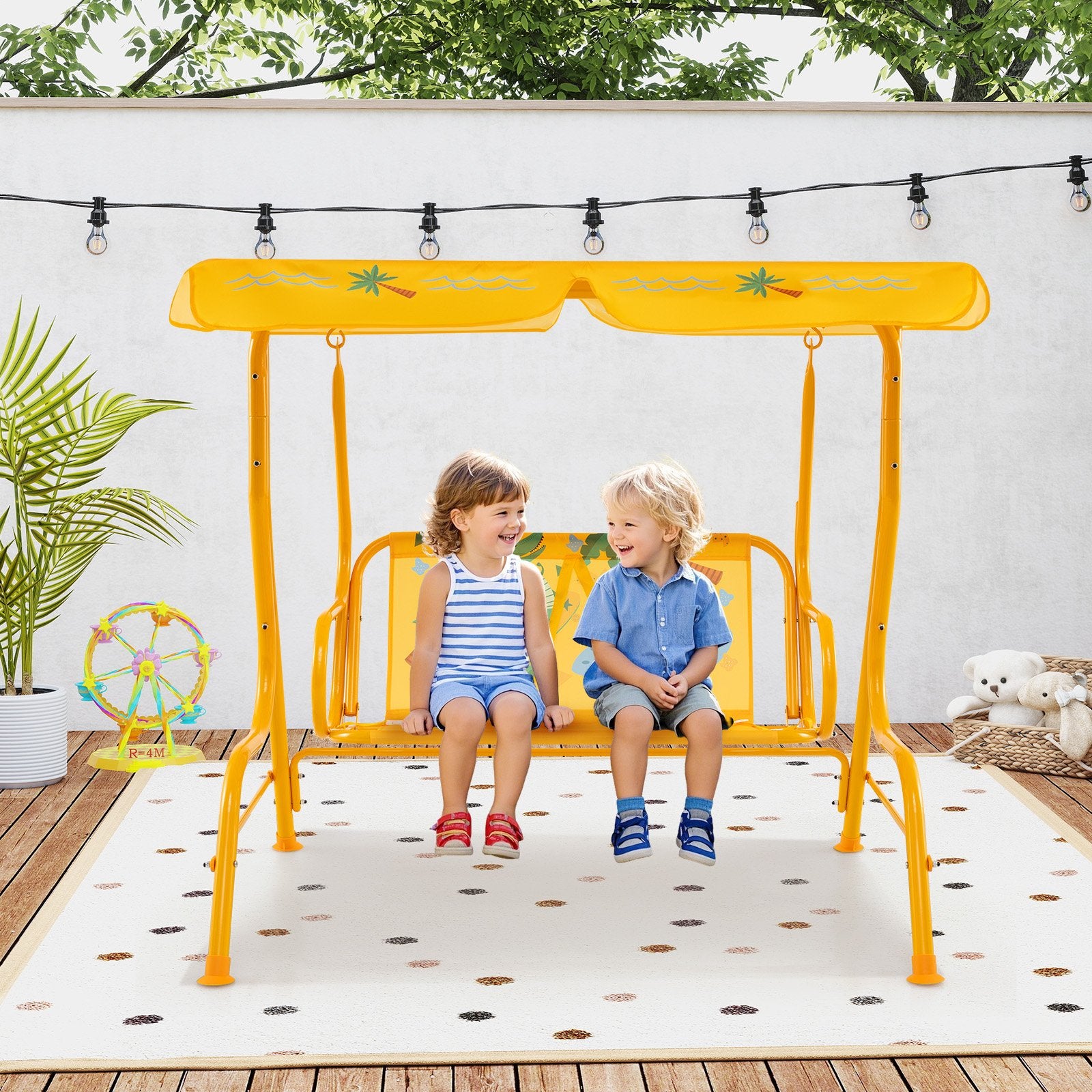 2-Seater Kids Patio Swing with Metal Stand and Adjustable Canopy-Bule