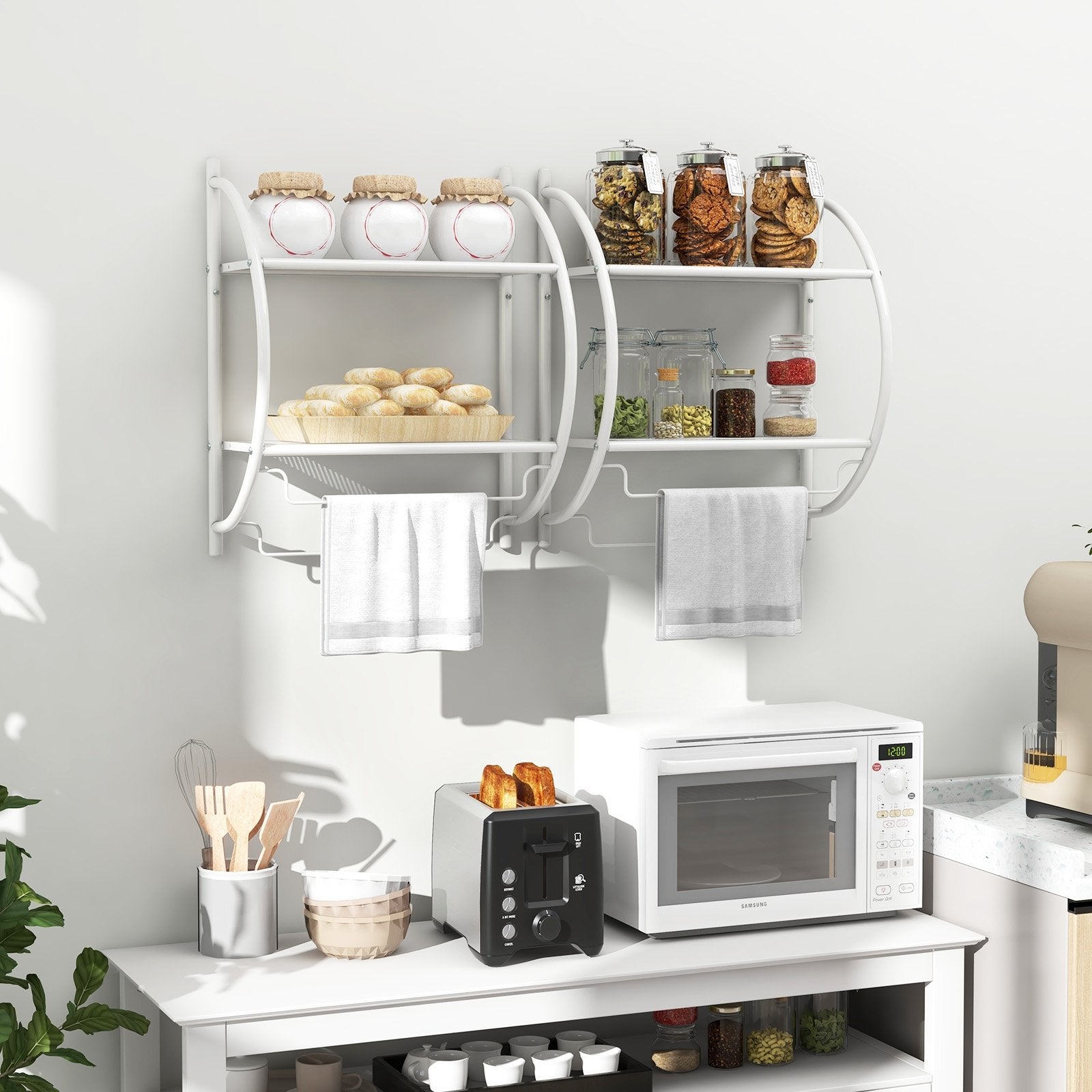 ● Wide Range of Application: As a perfect combination of practical storage function and modern simple style this 2-tier wall shelf is suitable for various occasions such as the bathroom kitchen entryway etc.