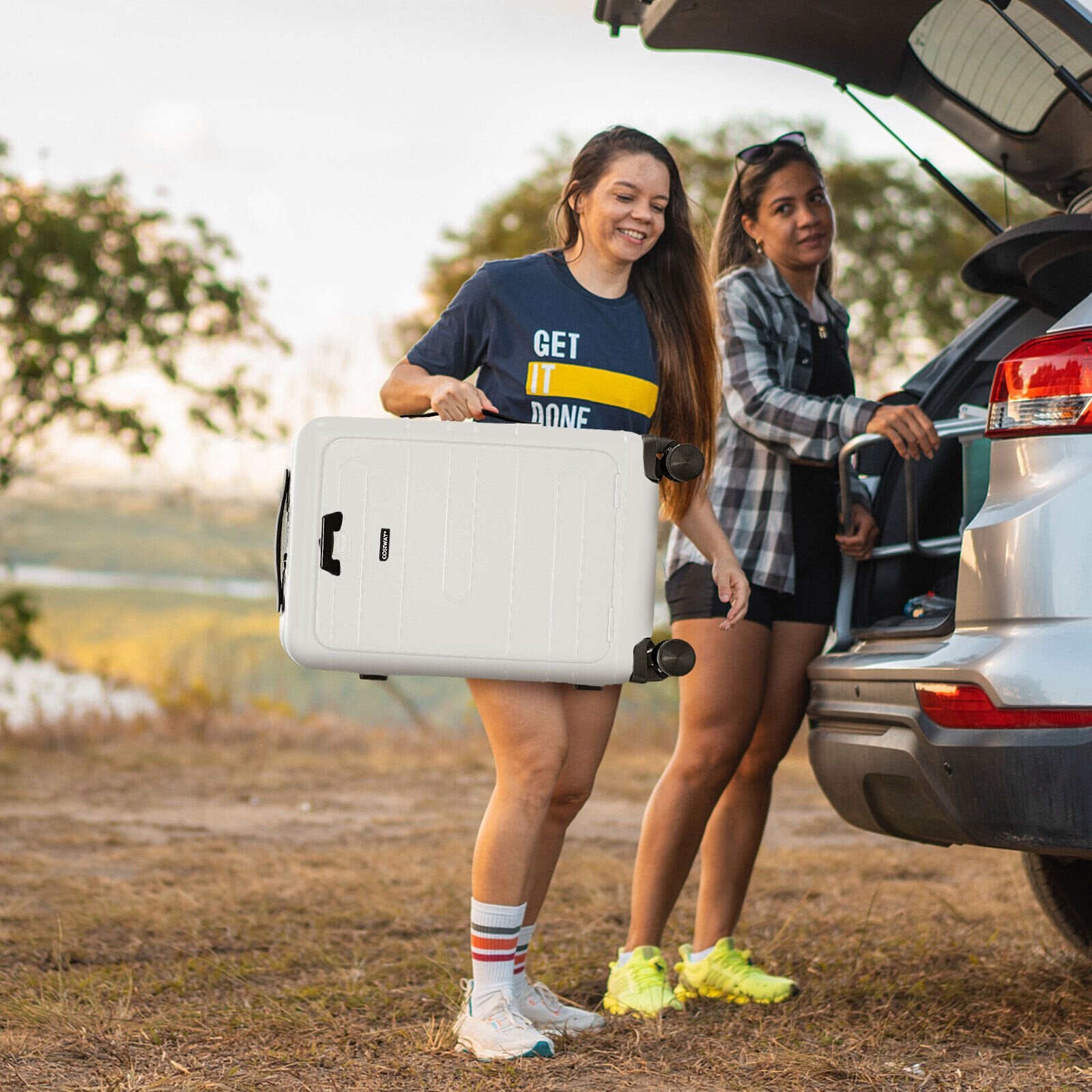● Silent Wheels and Adjustable Handles: The hardshell luggage is equipped with 4 double-spinner wheels that can be easily rotated 360° and moved silently and smoothly. More than that it features a 4-level adjustable telescoping handle which is suitable for people of different heights. And the handle is made of lightweight and sturdy aluminum material.