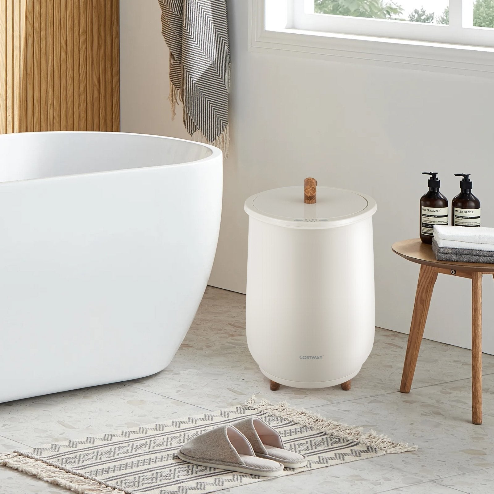 ● Compact Design and Stable Base: This compact portable and lightweight towel warmer bucket can fit any small space and is easy to move and carry. What's more 3 supporting legs with anti-slip foot pads can keep the towel warmer and stable anytime and anywhere.