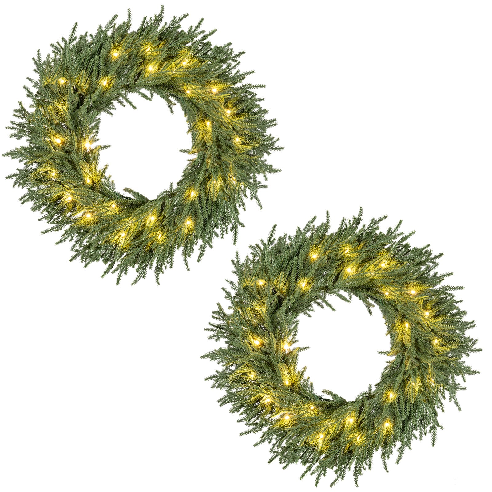 24 Inch Pre-lit Christmas Wreath with 108 Branch Tips and 35 Warm White LED Lights for Wall Window-2 piece