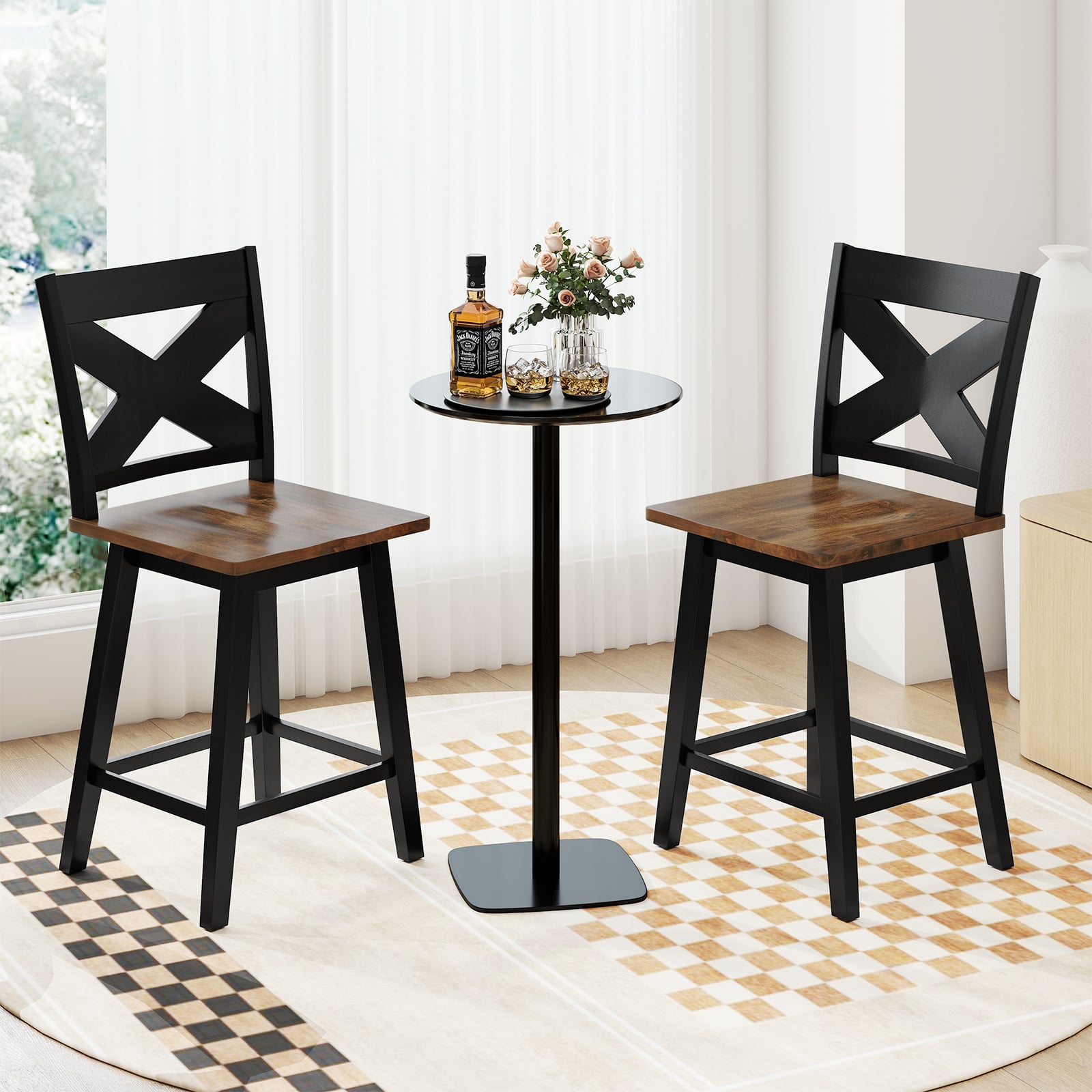 ● Warm & Inviting Look: These swivel barstools perfectly blend farmhouse charm with modern design. The appealing look makes them ideal for kitchen islands dining rooms or pubs seeking a cozy yet stylish atmosphere.