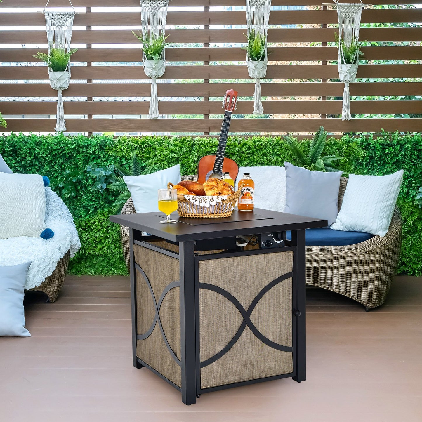 ● Considerate Design: This outdoor square fire table is equipped with an access door with a convenient handle allowing you to change the LP gas tank (not included) easily. Meanwhile the built-in hoop keeps it in place. Overall dimension: 25" x 25" x 25" (L x W x H).