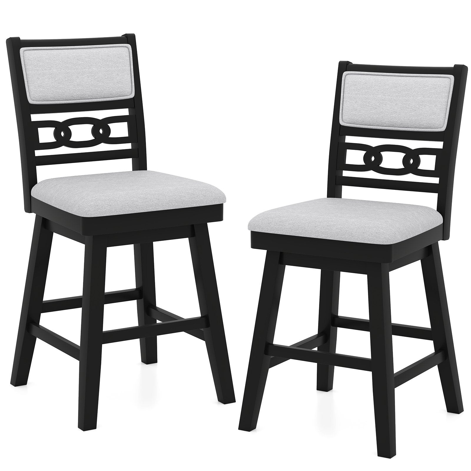 25 Inch Bar Stools Set of 2 with Upholstered Backrest and 360° Rotation Seat-Black