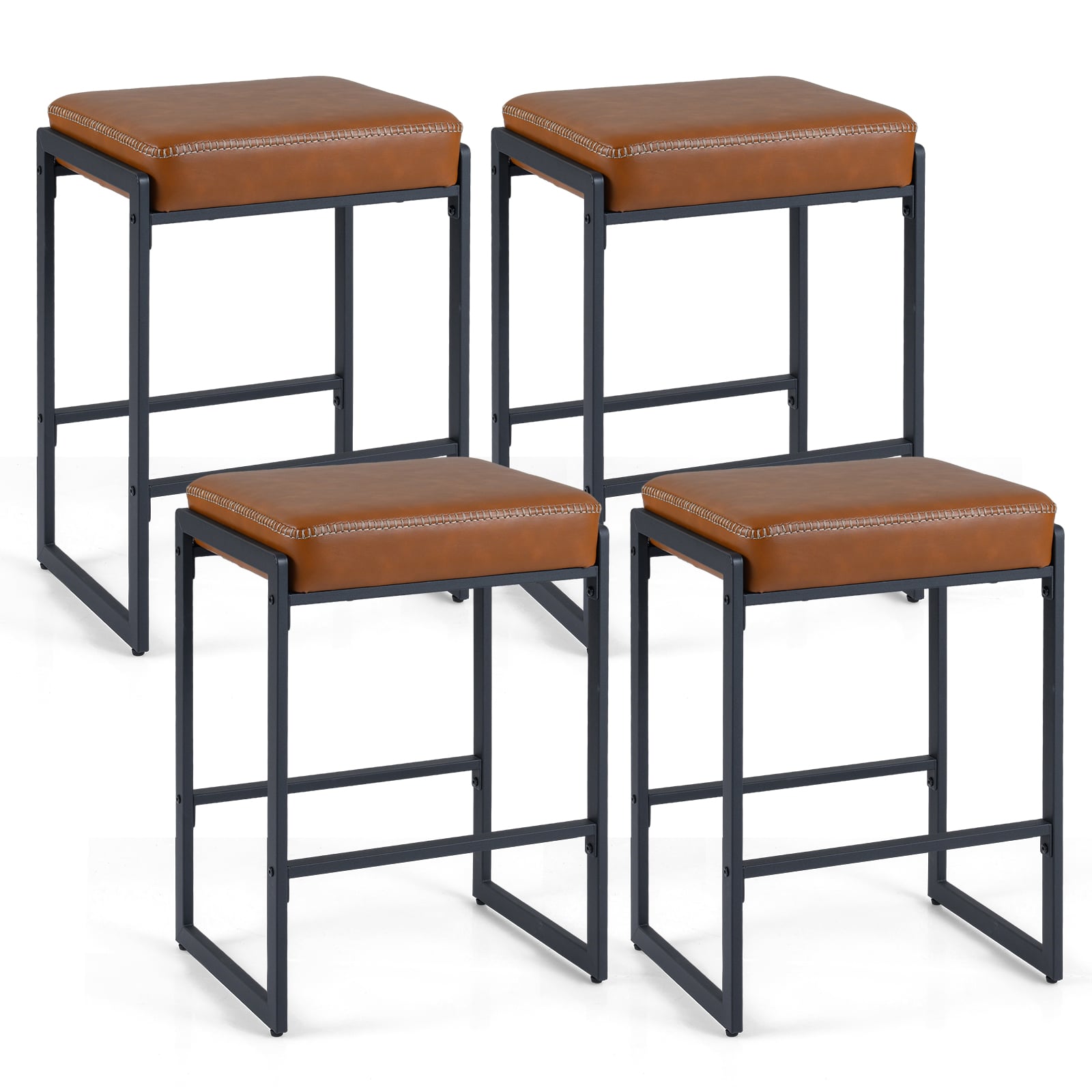 26 inch Bar Stools Set of 4 Counter Height Barstools with Faux Leather Upholstered Seat-Brown
