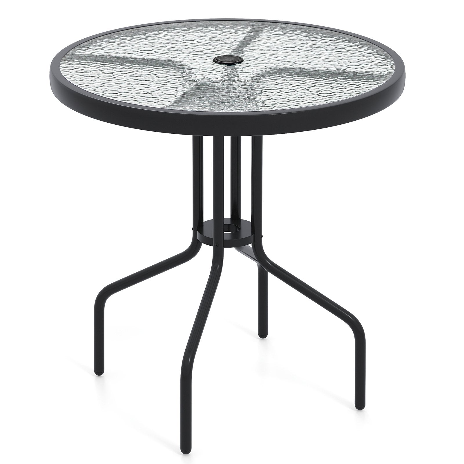 27.5 Inch Round Patio Dining Table with Rippled Tempered Glass Top for Backyard