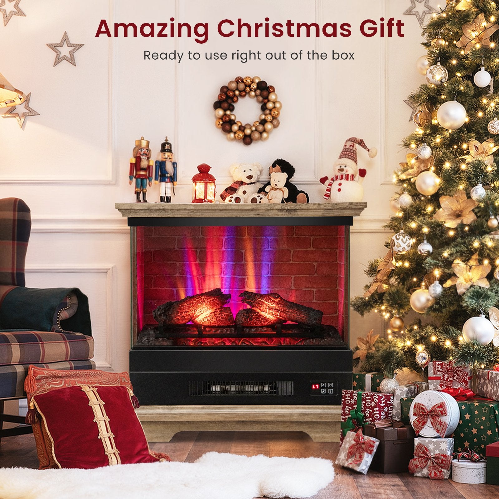 ● Multi-Color Realistic Flame: This freestanding electric fireplace features eye-catching 7-level flame effect creating an elegant and soothing ambience for relaxing. Moreover the 3-sided view allows you to appreciate the dancing flame from more angles. And the flame effect can be used without heating function.