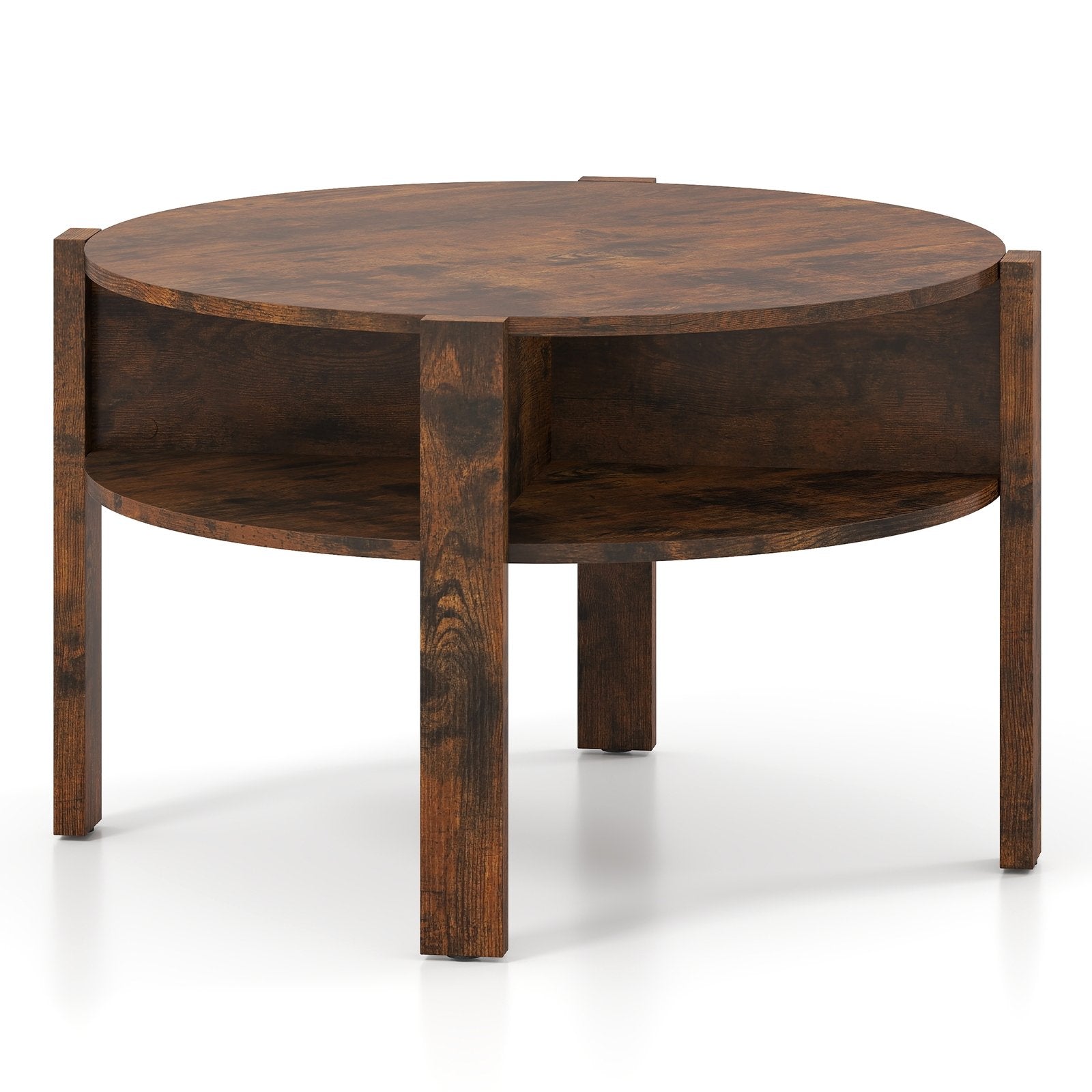 29.5 Inch Round Coffee Table with Storage Shelves for Small Space-Rustic Brown