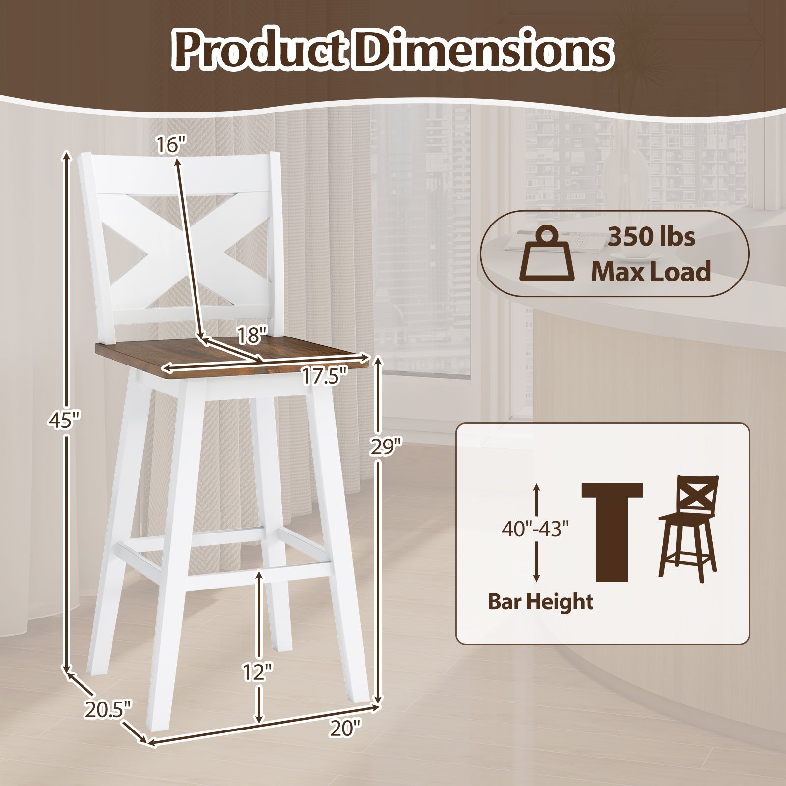 ● Naturally Strong Frame: Crafted from high-hardness rubberwood each counter/bar chair ensures long-lasting durability and strong support up to 350 lbs. Moreover the smooth splinter-free finish brings natural elegance to dining space. The non-slip foot pads offer higher stability and protect the floors.