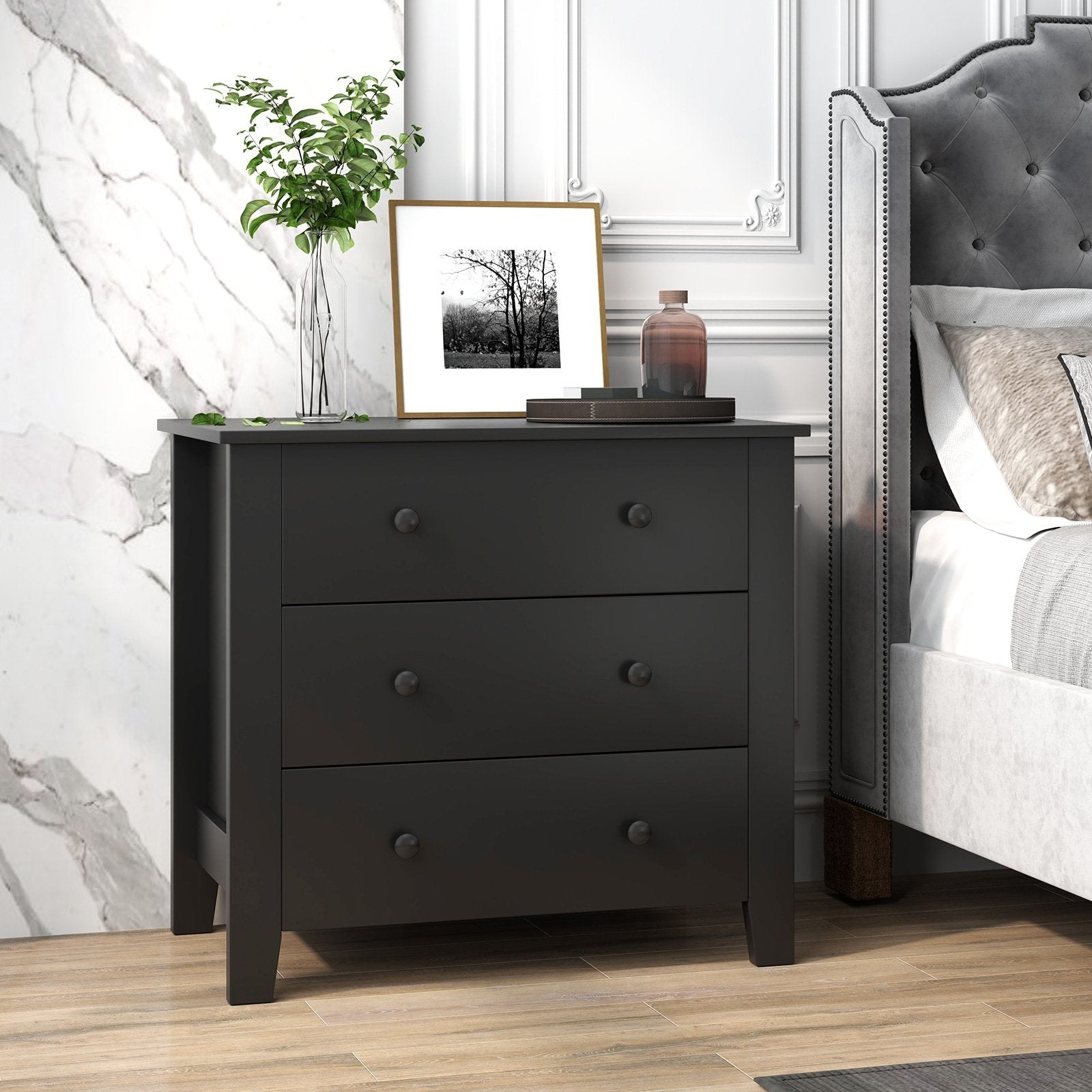 3 Drawer Dresser Chest of Drawers Bedside Table-Black