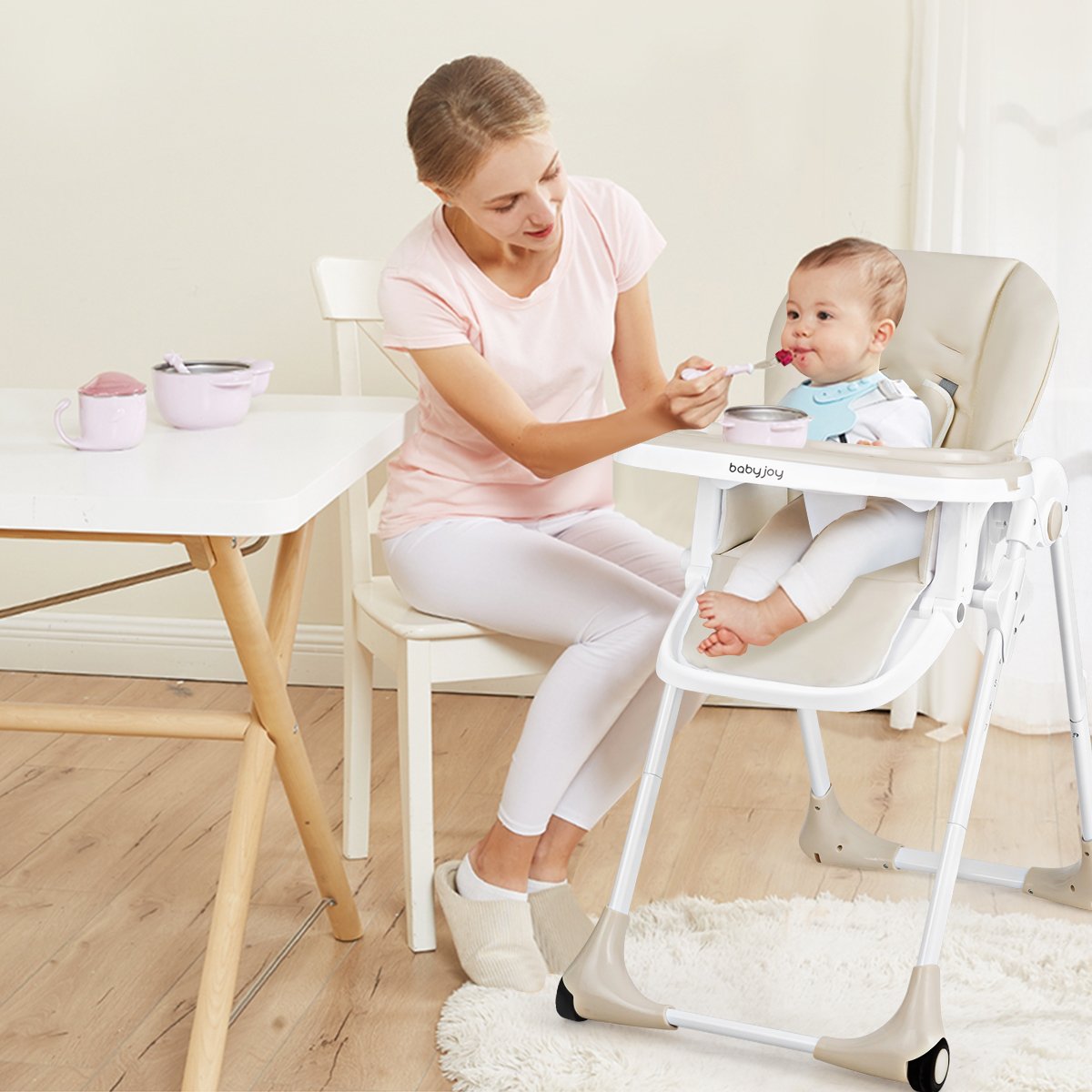 ● Convertible and Adjustable Design: This baby highchair has 7 adjustable seat heights 3 backrest reclining angles and 3 footrest positions suitable for babies of most sizes. Featuring multipurpose use the infant high chair not only is a feeding chair but also can be transformed into a recliner or a reading chair.
