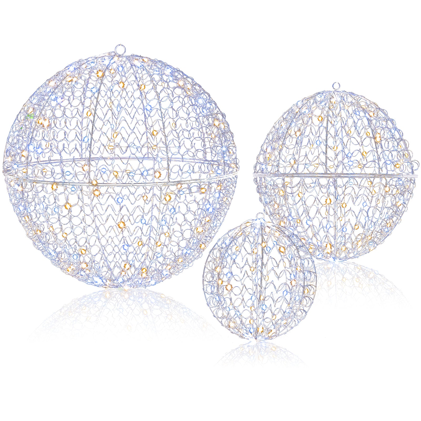 3 Pcs Lighted Christmas Balls Large Standing/Hanging Metal Sphere Lights with 435 LEDs