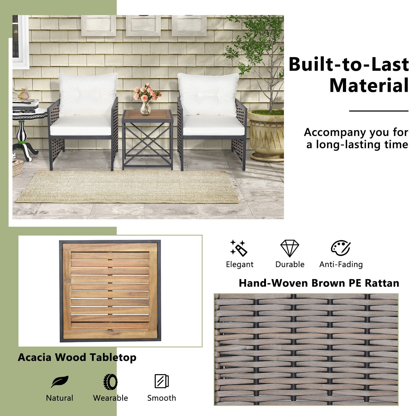 3 Piece Patio Rattan Furniture Set with Acacia Wood Tabletop-Gray