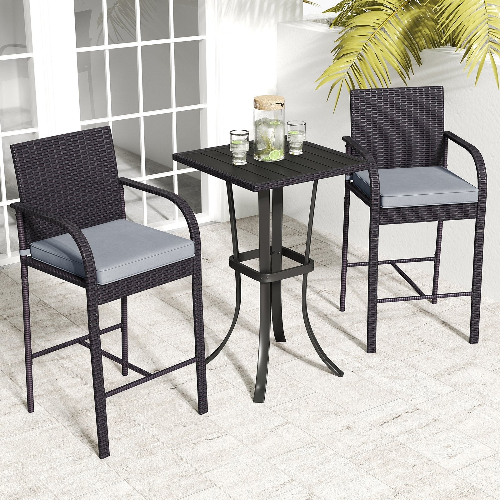3-Piece Patio Wicker Rattan Bar Height Chairs and Square Table Set-Black