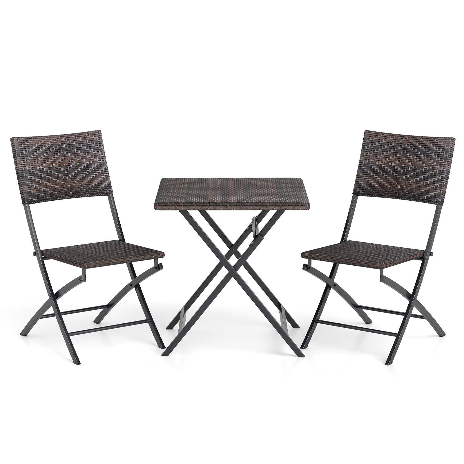 3 Piece Rattan Bistro Set Outdoor Folding Dining Table and Chairs with Wicker Seat