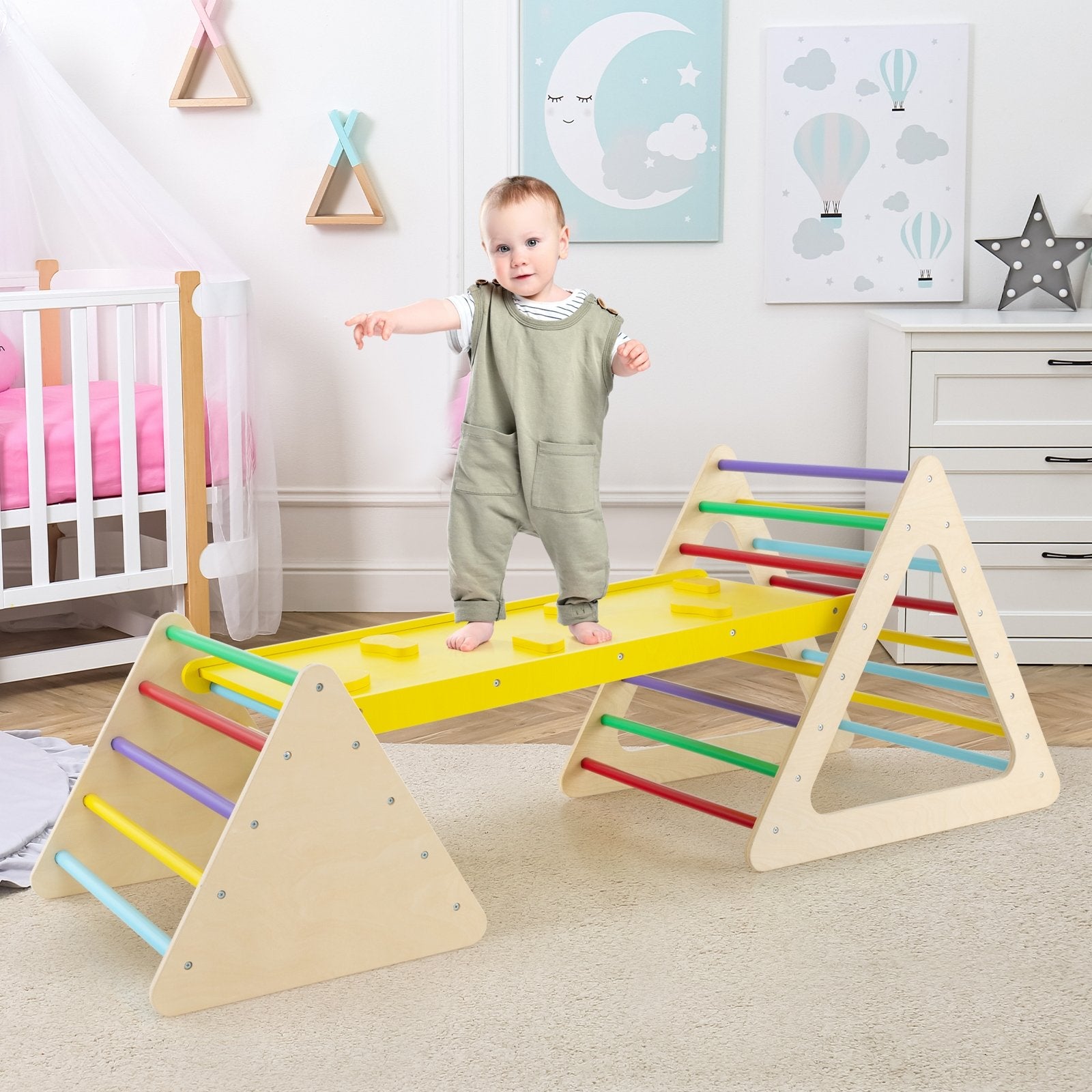 3 Piece Toddler Triangle Set Montessori with 2 Climbing Triangles and 1 Ramp-Colorful