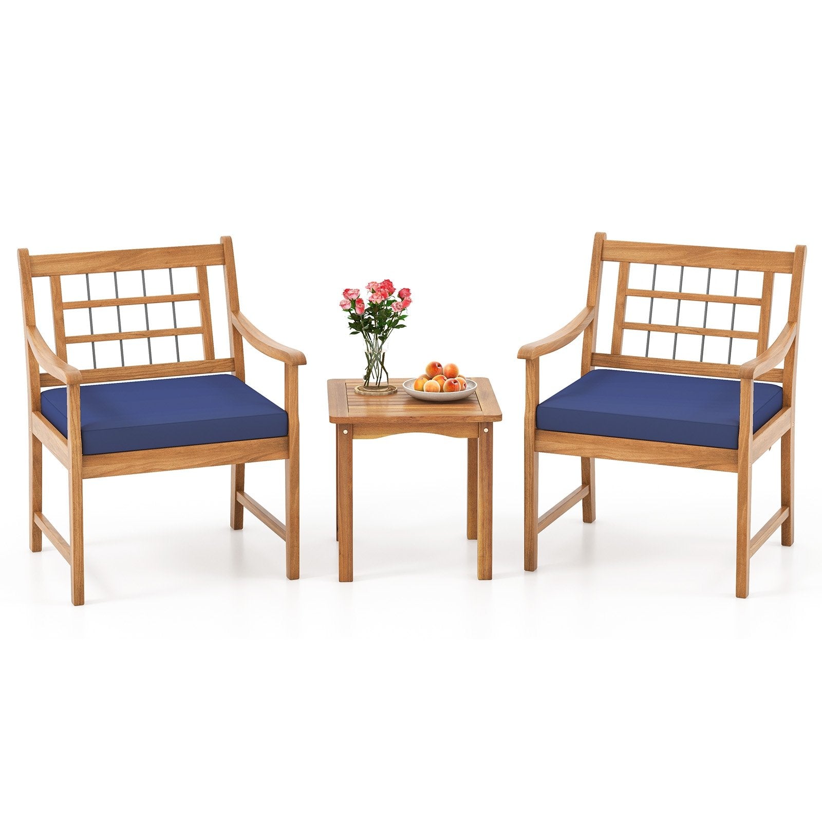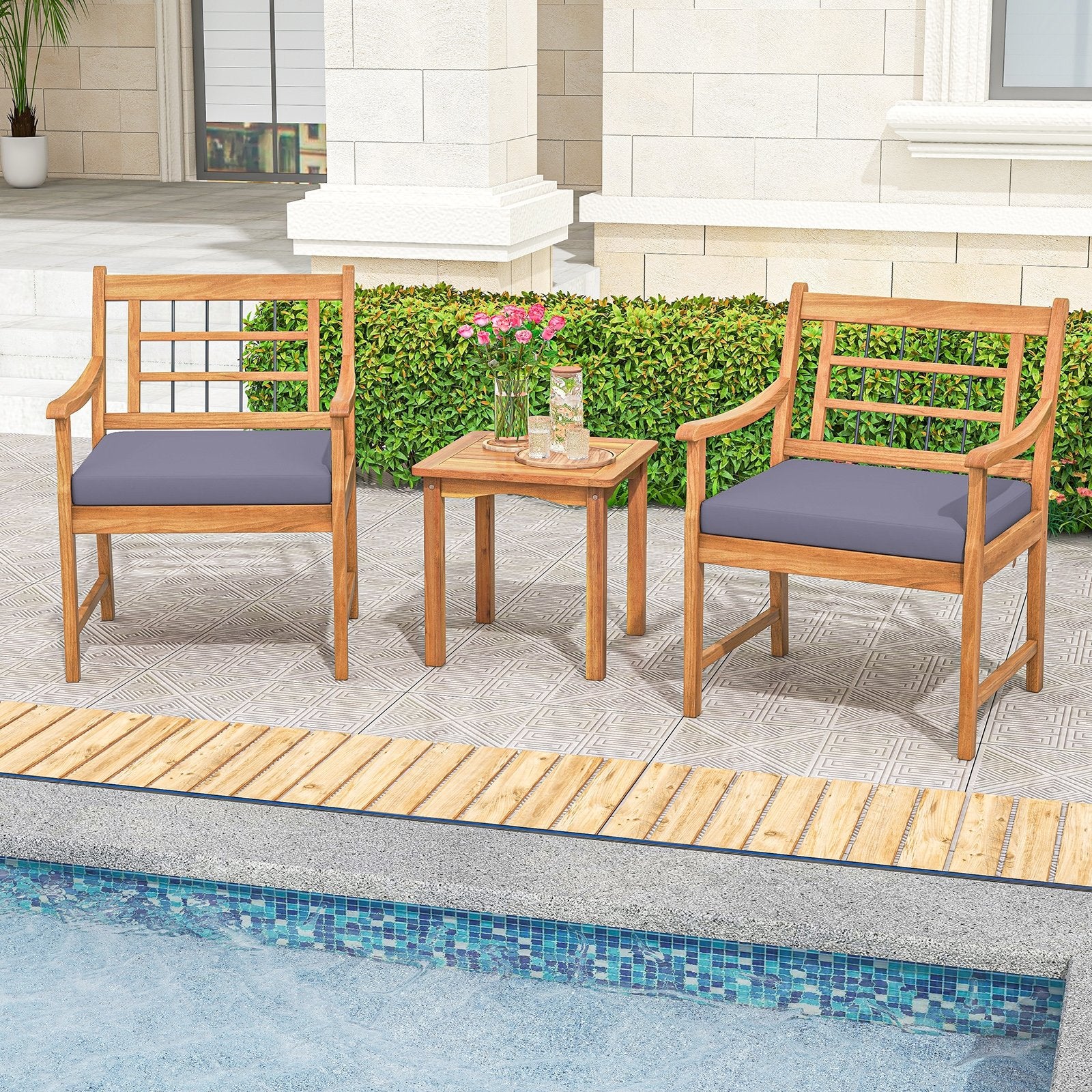 3 Piece Wood Patio Furniture Set with Seat Cushions and Acacia Wood Frame-Gray