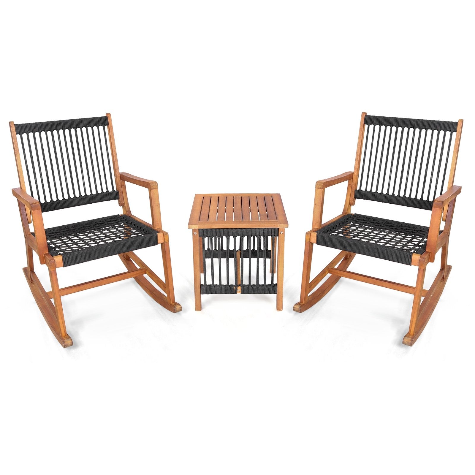 ● Wanna Know More: This 3-piece rocking bistro set includes a side table (18" L x 18" W x 18" H) and 2 rockers (33" L x 24" W x 36" H) which creates a cozy space for outdoor enjoyment.