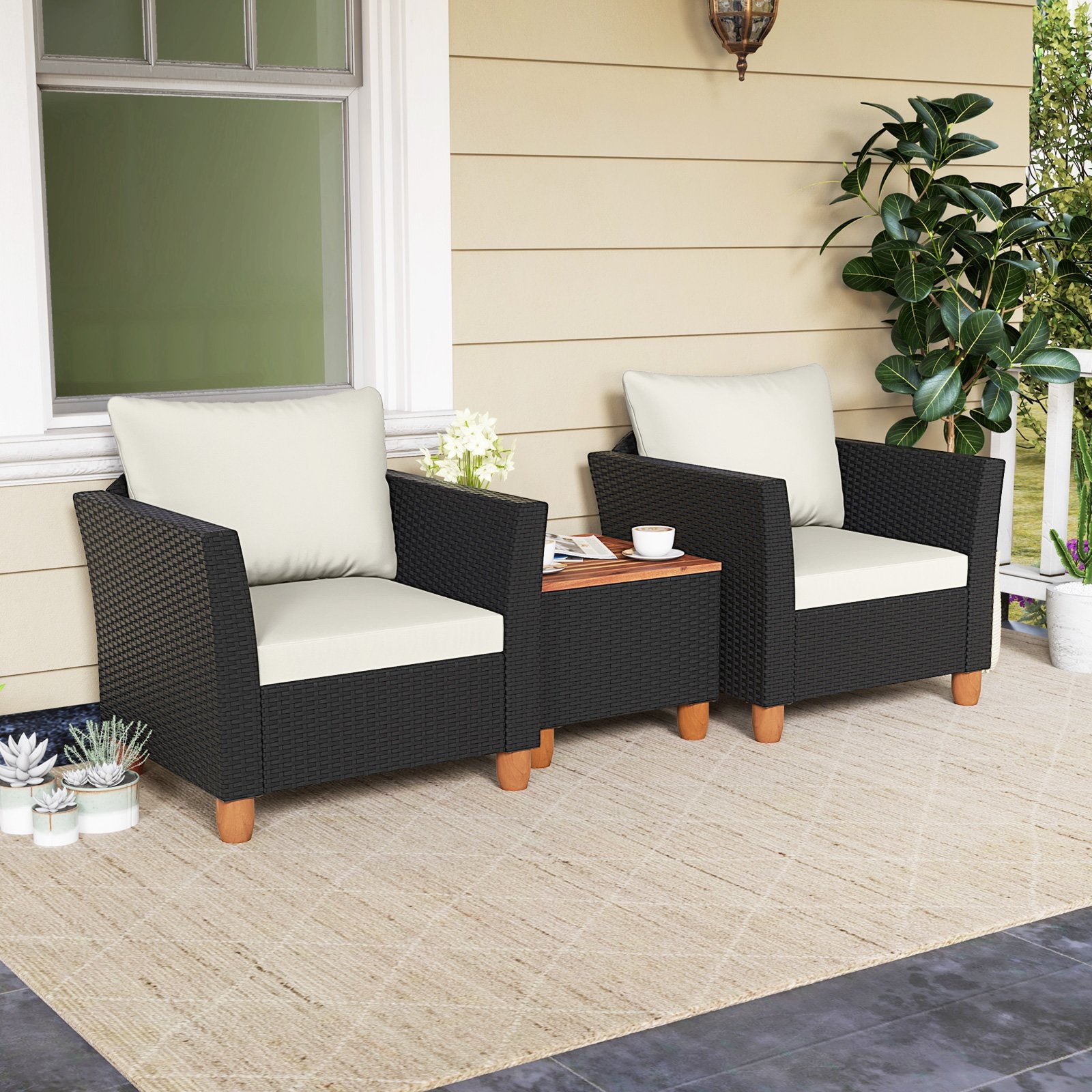 3 Pieces Outdoor Patio Rattan Furniture Set-Black