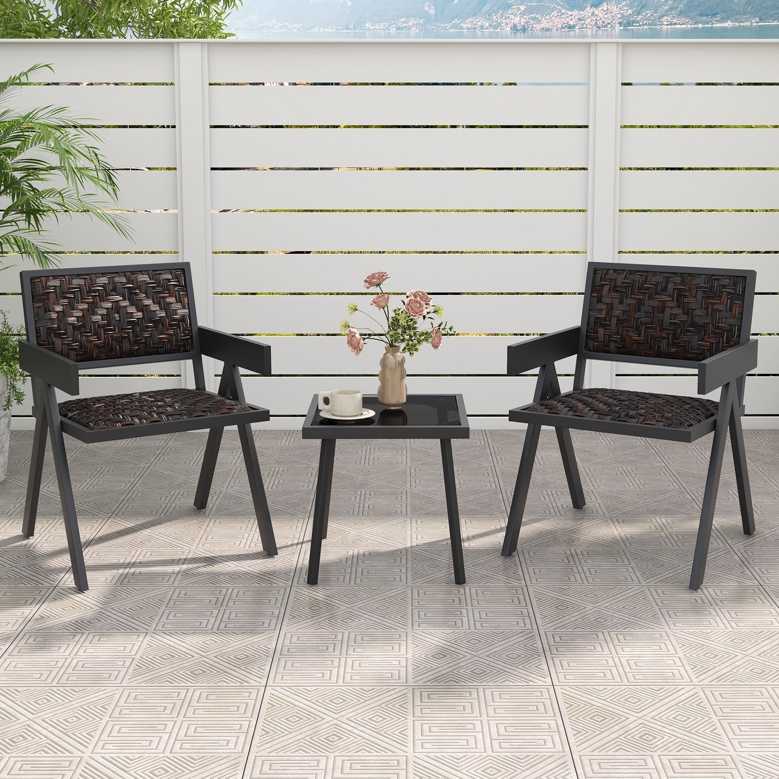 ● Hand-woven PE Rattan: Fade-resistant and sun-protective mix brown PE wicker promises this patio bistro set remains vibrant and fresh-looking season after season while offering exceptional breathability.
