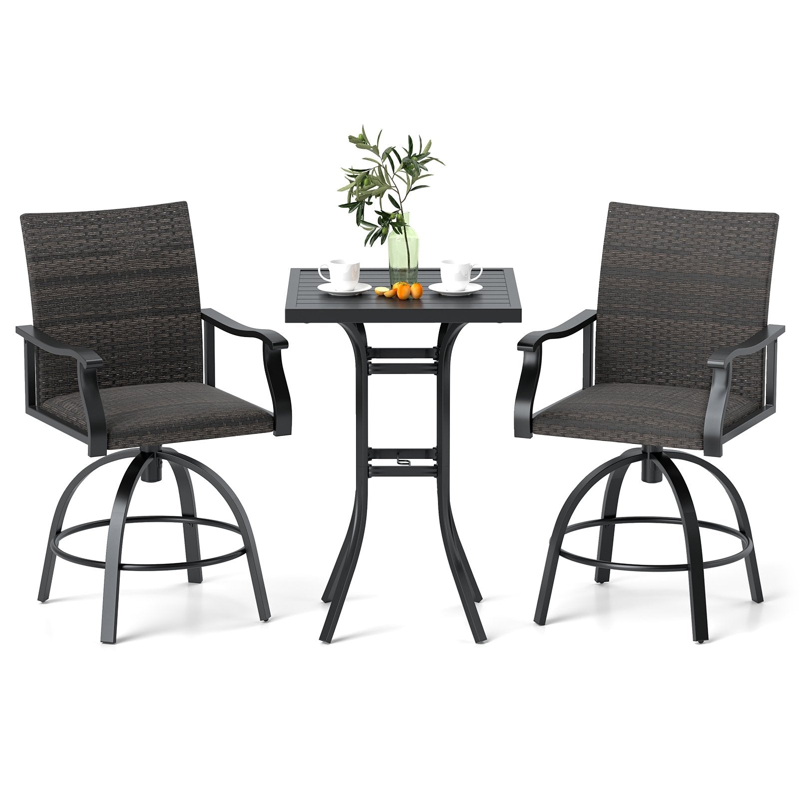 3 Pieces PE Wicker Patio Swivel Bar Set with Quick-Drying Foam-Black