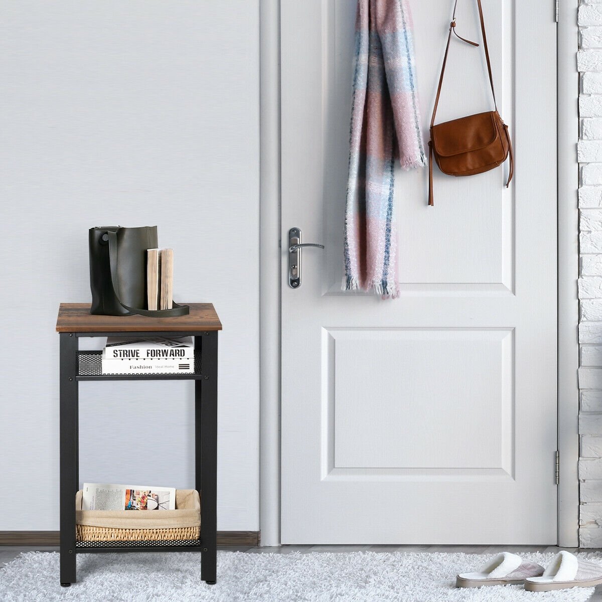3-Tier Industrial End Table with Metal Mesh Storage Shelves