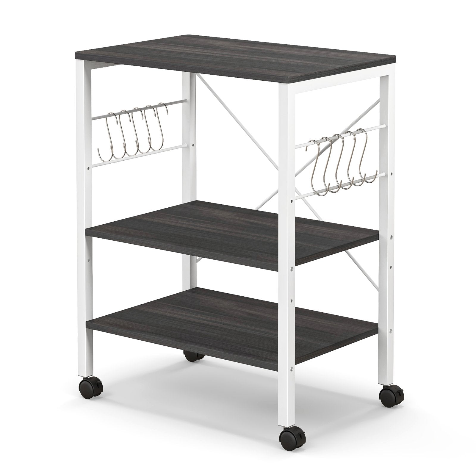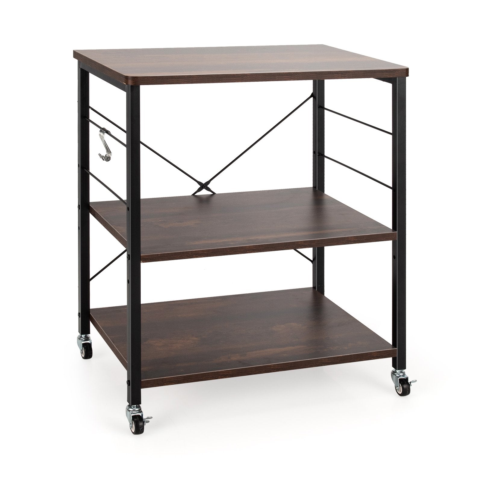 3-Tier Kitchen Baker's Rack Microwave Oven Storage Cart with Hooks-Charcoal Brown