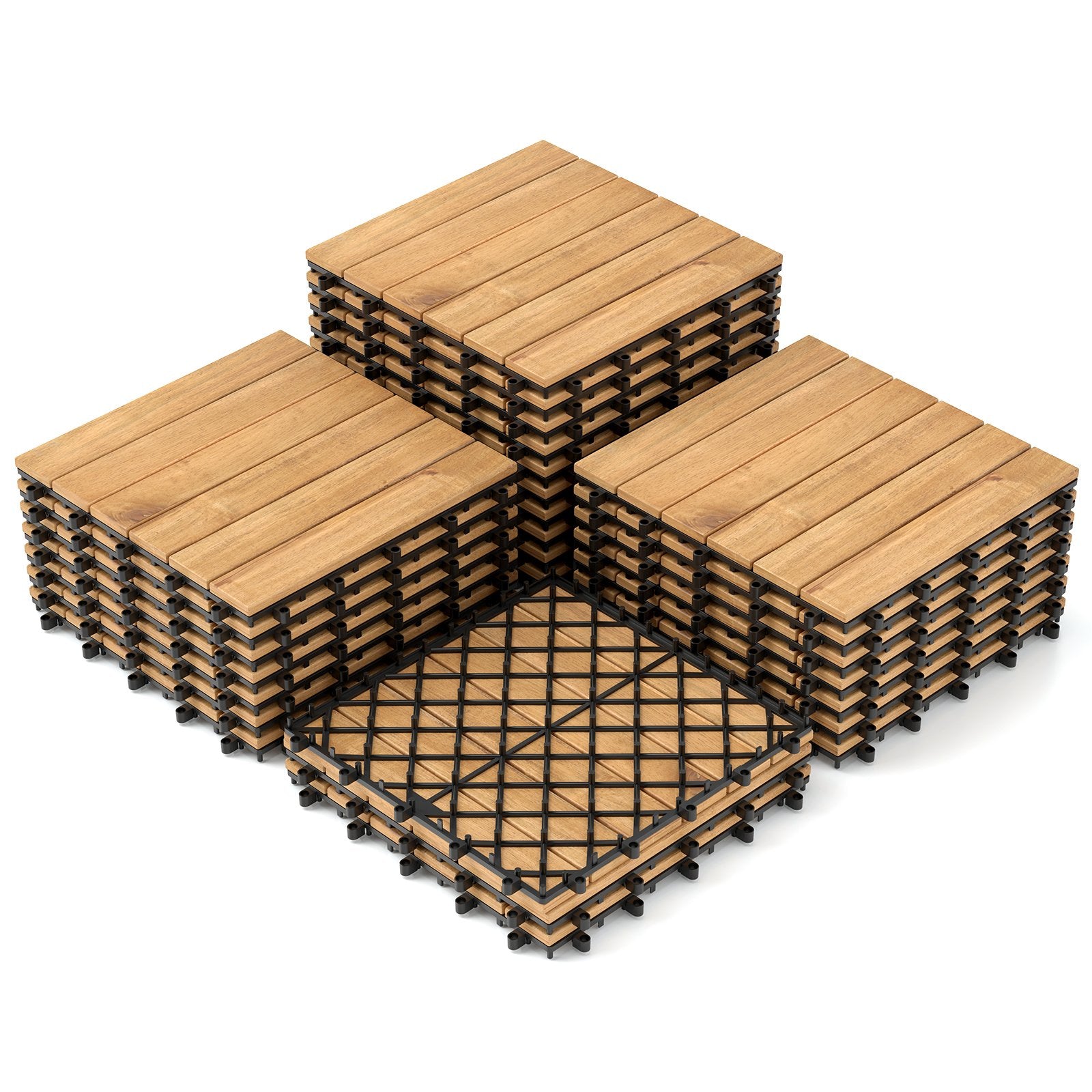 30 PCS Interlocking Deck Tiles 12 x 12 Inch Acacia Wood Patio Tiles with Straight Slats-Natural