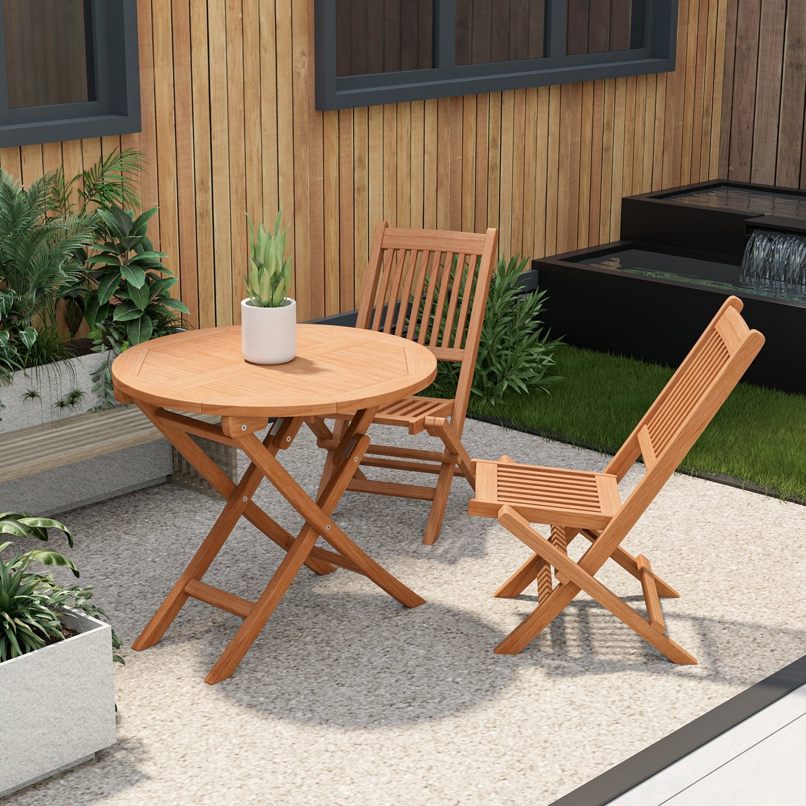 31.5 Inch Folding Patio Indonesia Teak Wood Round Coffee Table