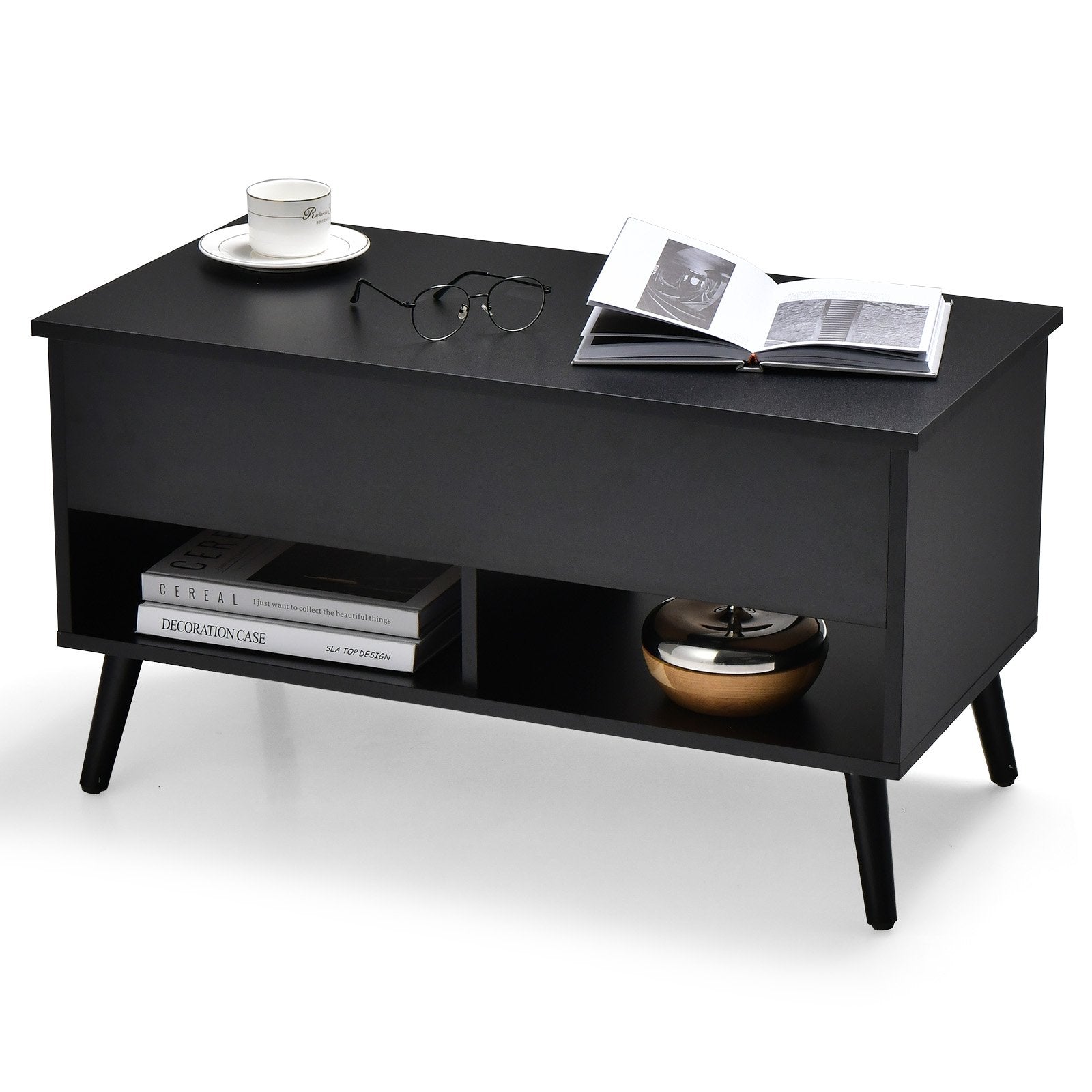 31.5 Inch Lift Top Coffee Table with Hidden Compartment and 2 Storage Shelves-Black