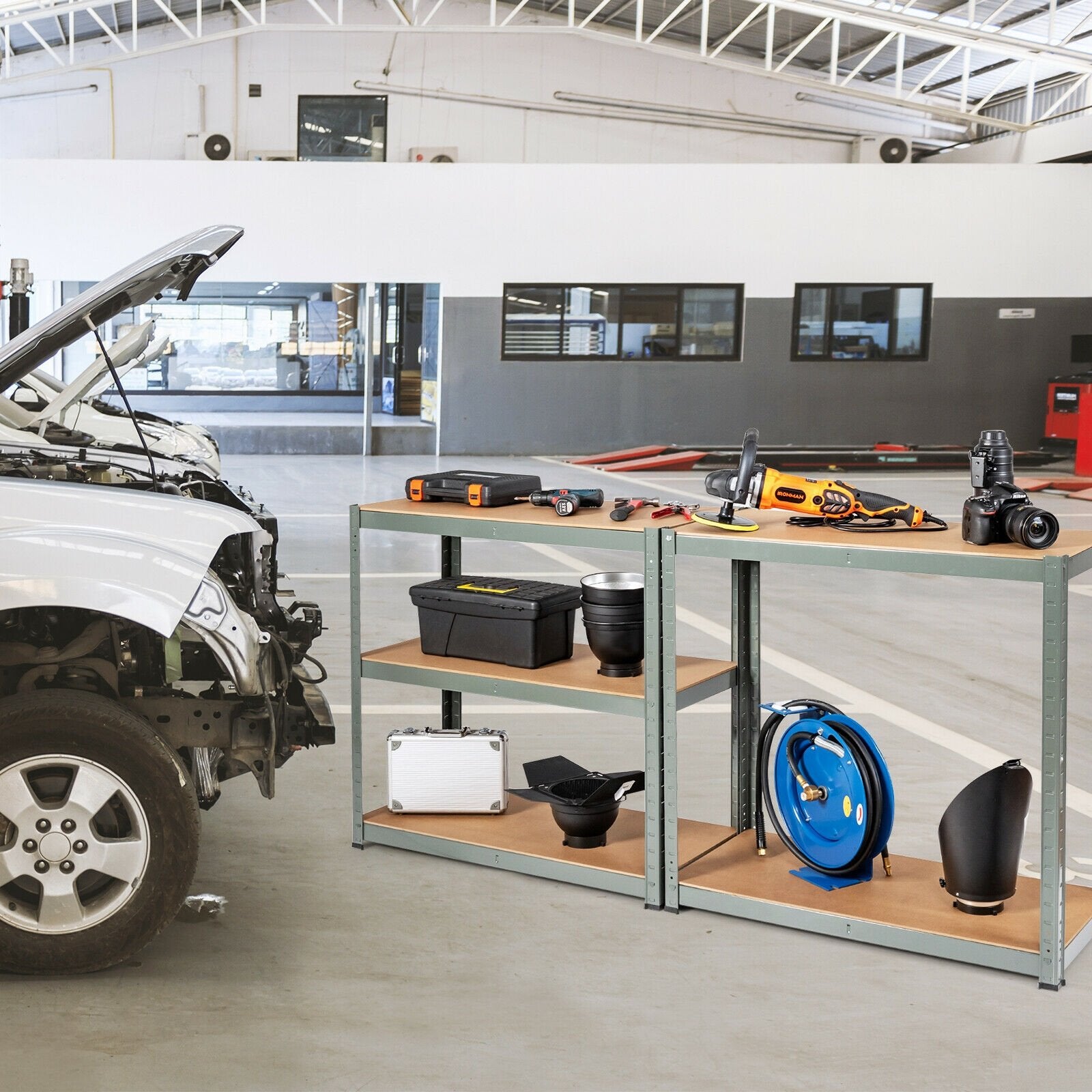 ● Each shelf is allowed to hold up to 400 lbs