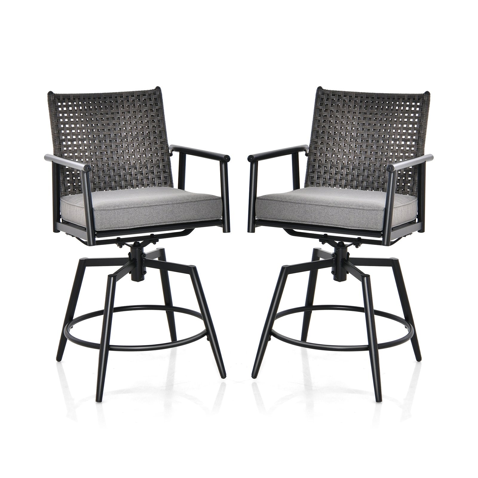 360 Degree Swivel Bar Stool Set of 2 with Metal Frame and PE Rattan Backrest-Black