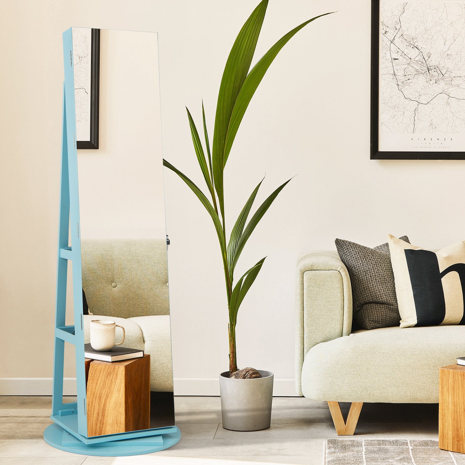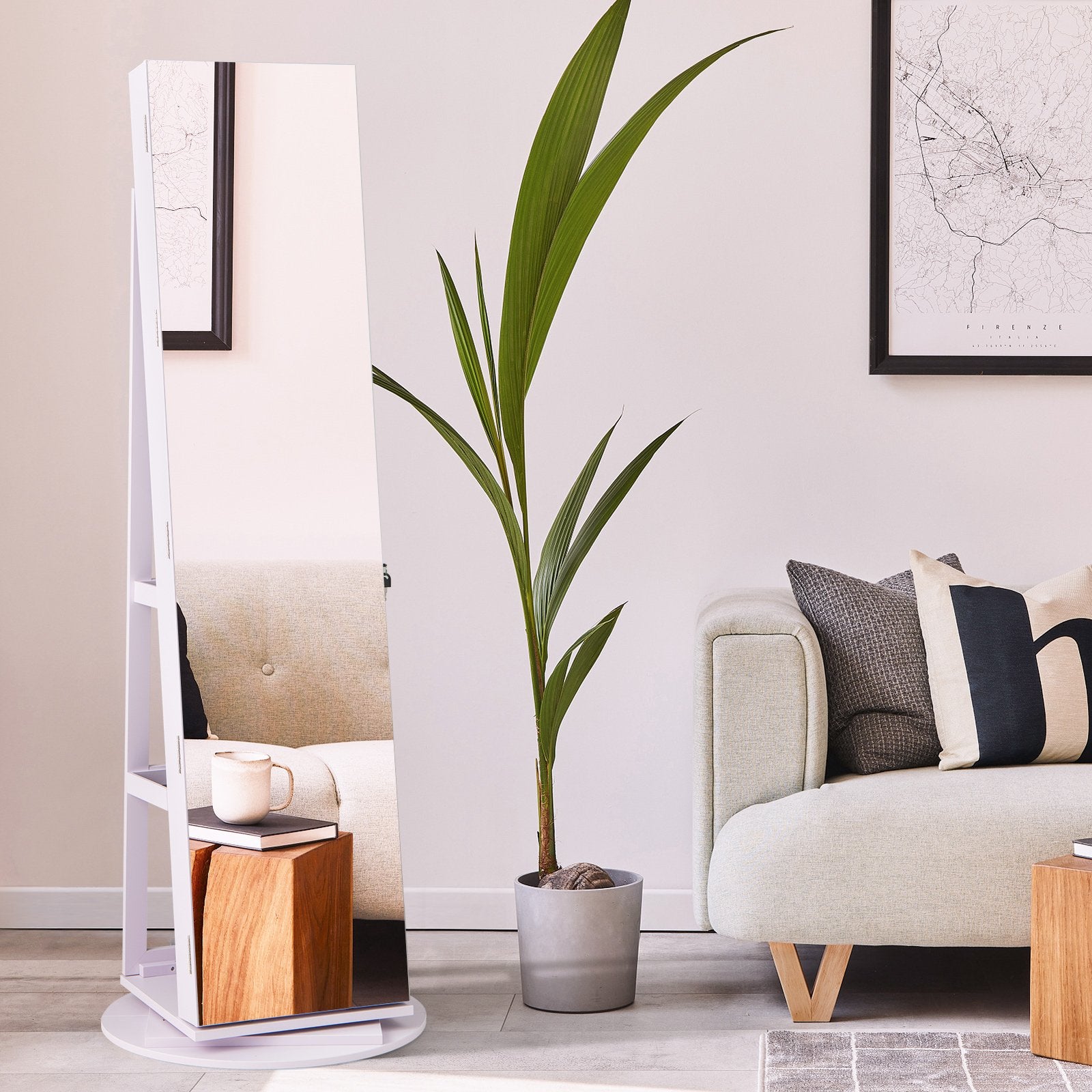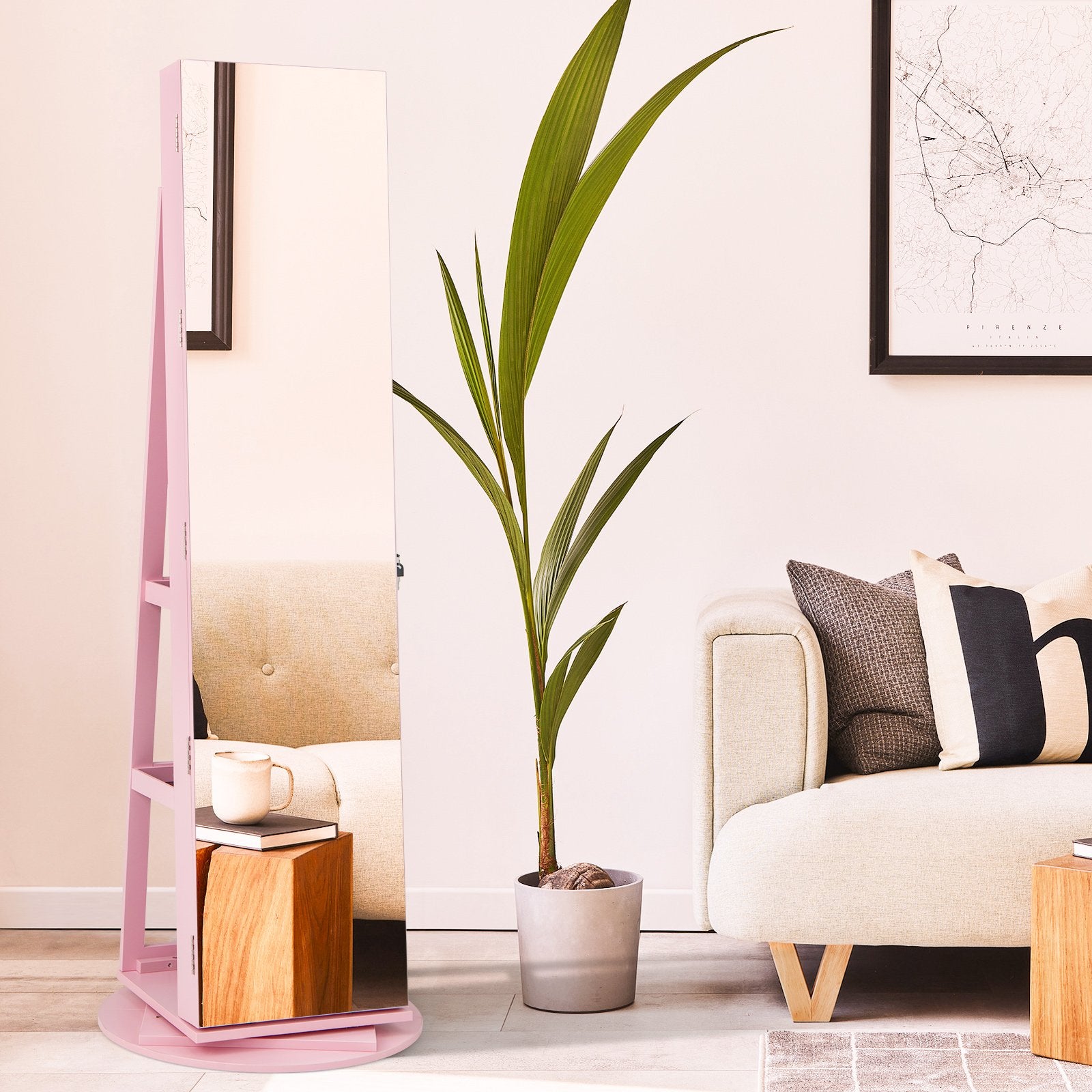 ● 360° Swivel Base and 3 Back Storage Shelves: Enjoying with the 360 degree swivel base the mirrored jewelry organizer is more flexible to meet your different needs. 3 back storage shelve of the jewelry cabinet can store your handbag books or other items and they can also make the jewelry organizer more stable.