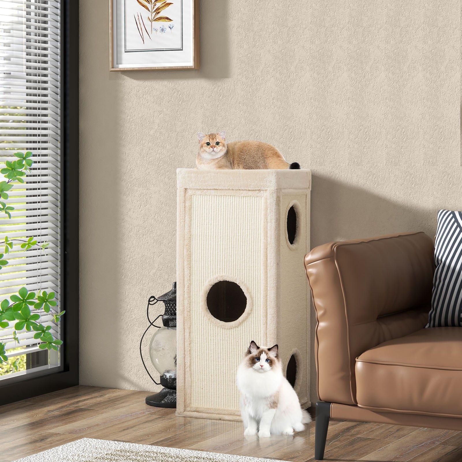 ● 4-Story Cat Tower: The cat house measures 40 x 40 x 99 cm/16" x 16" x 39" (L x W x H) and comes with 4 stories offering your lovely furry friend layers of cozy hideaways to relax sleep and hide. And there exist 3 outer entrance holes and 2 inner holes allowing cats to jump up and down seamlessly.