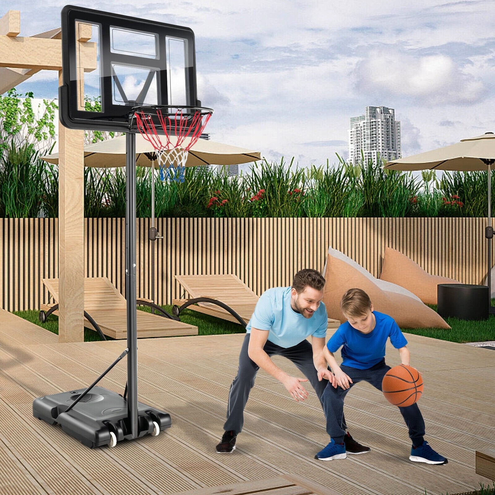 ● 12-Level Adjustable Height: The height of this basketball hoop can be adjusted from 4.25 ft-10 ft (floor to rim height) to provide people of all age stages with basketball fun such as kids teenagers and adults. So this height adjustable basketball hoop allows your whole family to enjoy playing basketball in the next couple of years.