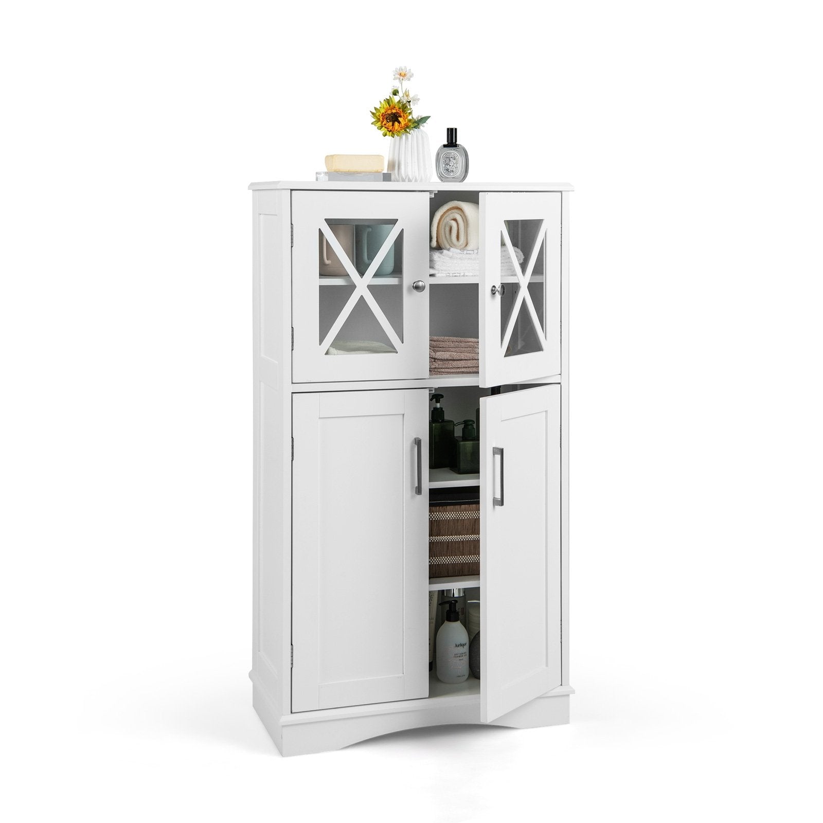 4 Doors Freeestanding Bathroom Floor Cabinet with Adjustable Shelves-Black