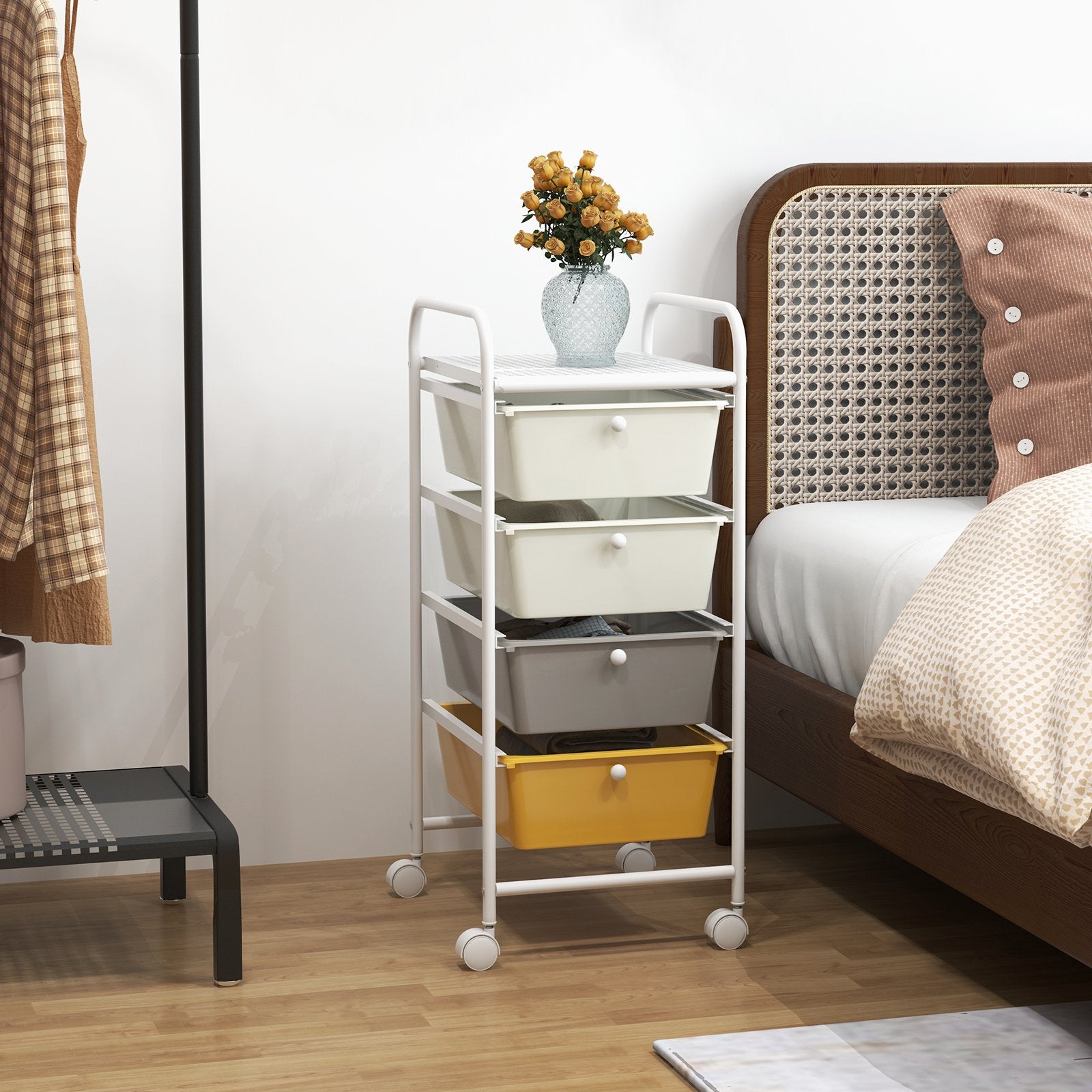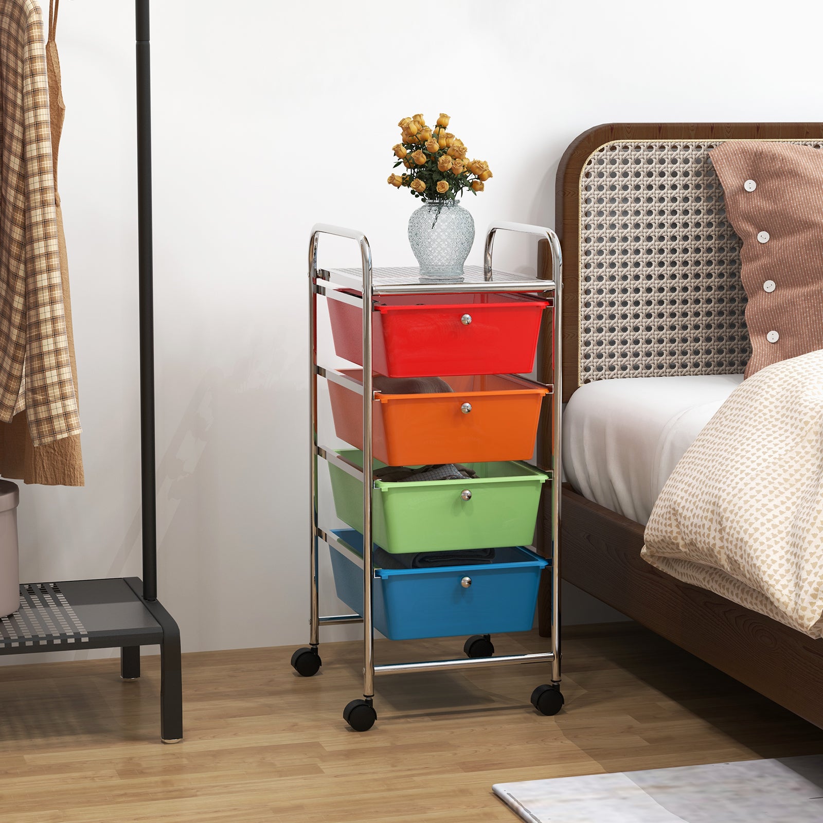 4-Drawer Cart Storage Bin Organizer Rolling with Plastic Drawers-Black