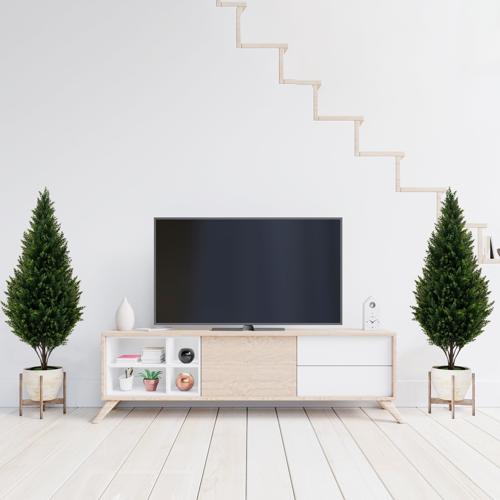 ● Stable and Secure Structure: The artificial cedar trees feature solid flowerpots with built-in cement ensuring good stability and sturdiness while preventing children or pets from knocking it down easily. For added aesthetic appeal you can place the plants in bigger decorative flowerpots.