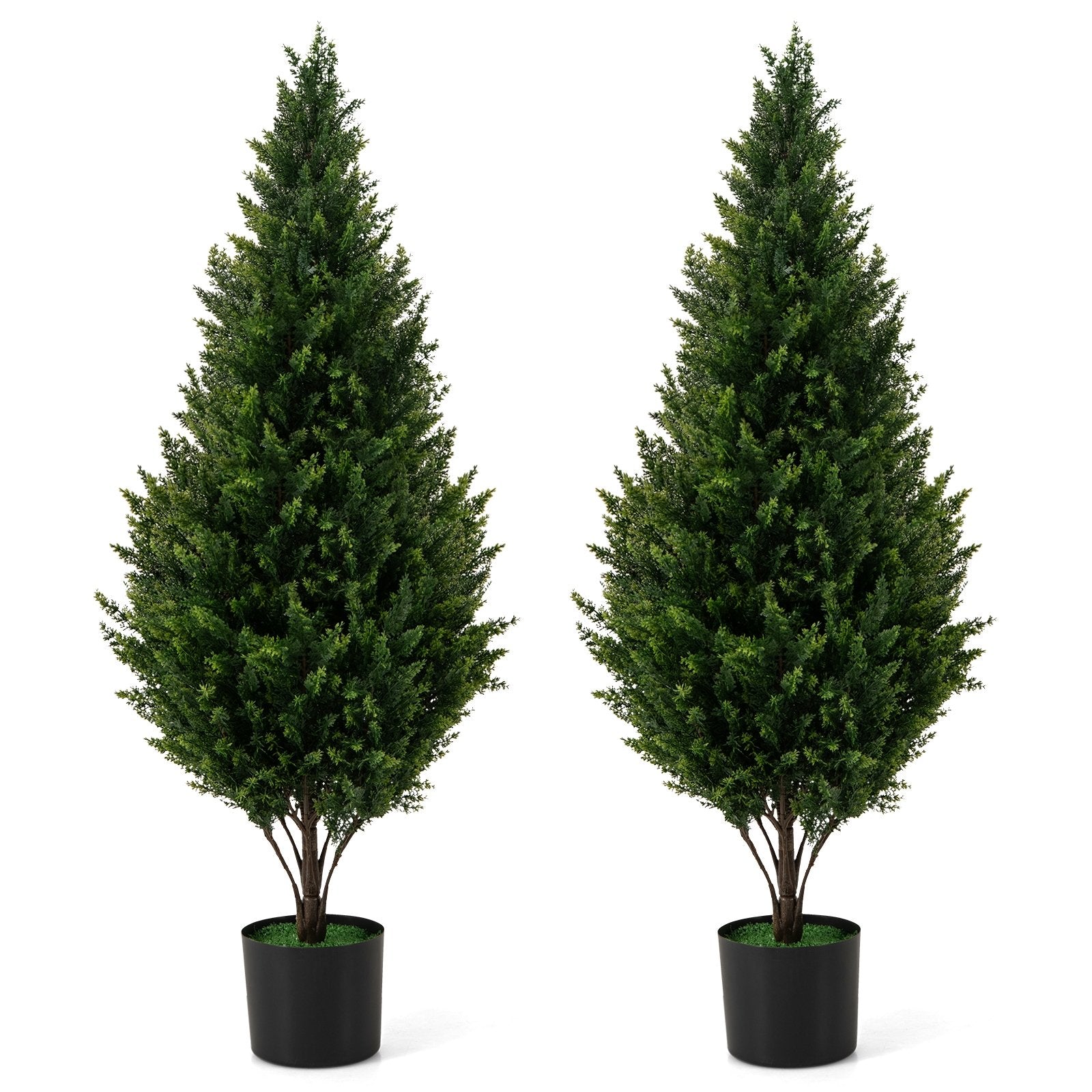 4 FT Artificial Topiary Tree Set of 2 for Indoor Outdoor Home Front Porch-Green