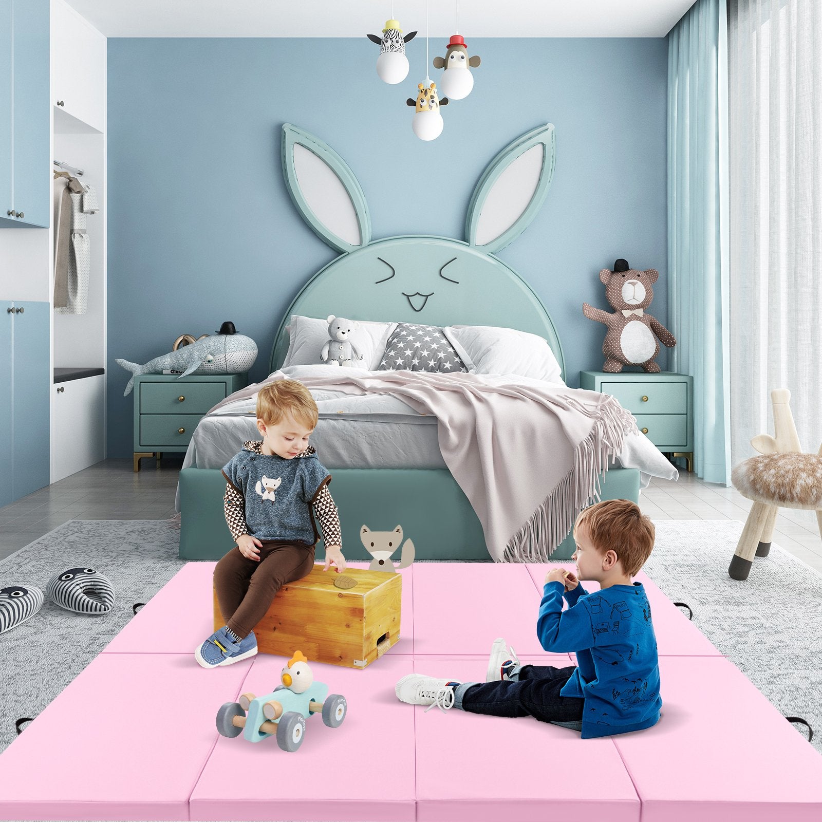 4-Panel PU Leather Folding Exercise Mat with Carrying Handles-Black