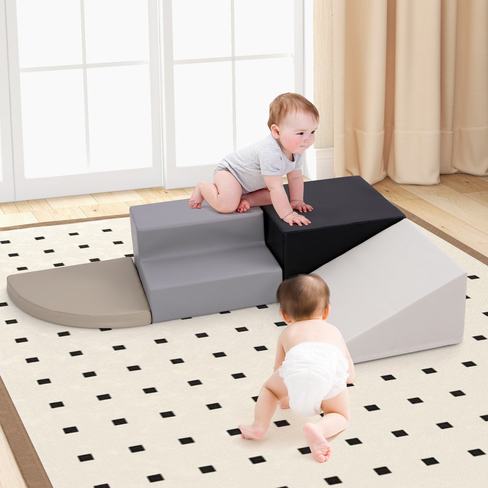 4-Piece Climb and Crawl Foam Block Play Set for Infant Baby-Black