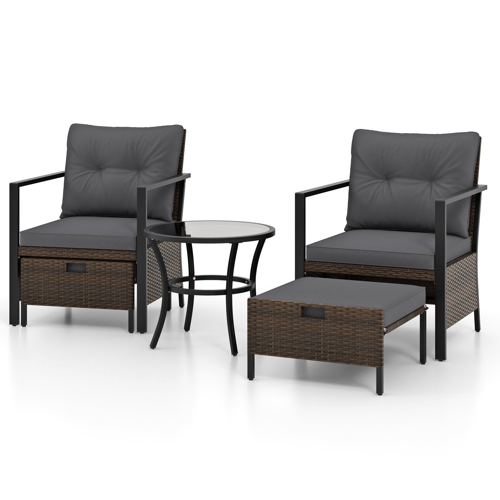● Appealing Rattan Surface: The armchairs and ottomans are crafted with premium mix brown PE rattan which is well-woven sunproof and anti-fading making the whole patio set built-to-last and appealing.