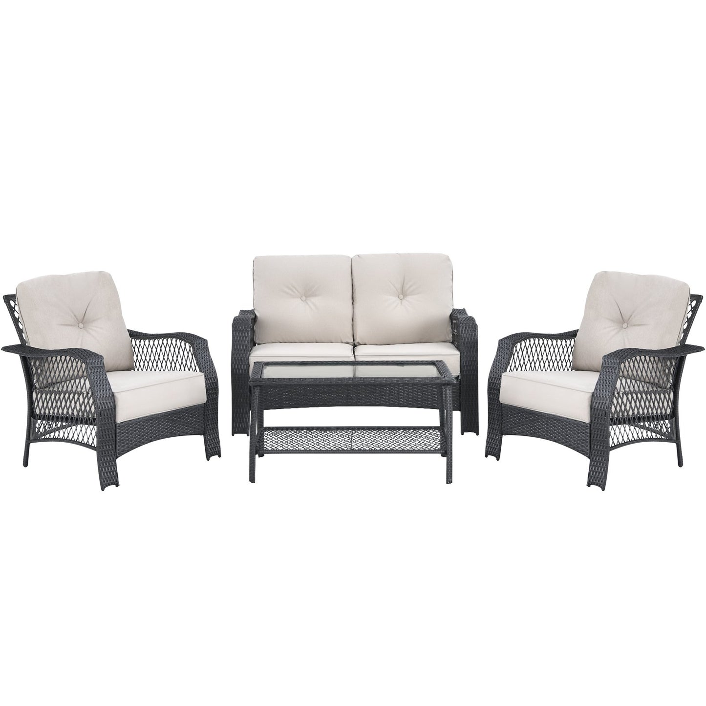 4 Pieces Patio Wicker Furniture Set Loveseat Sofa Coffee Table with Cushion-Beige