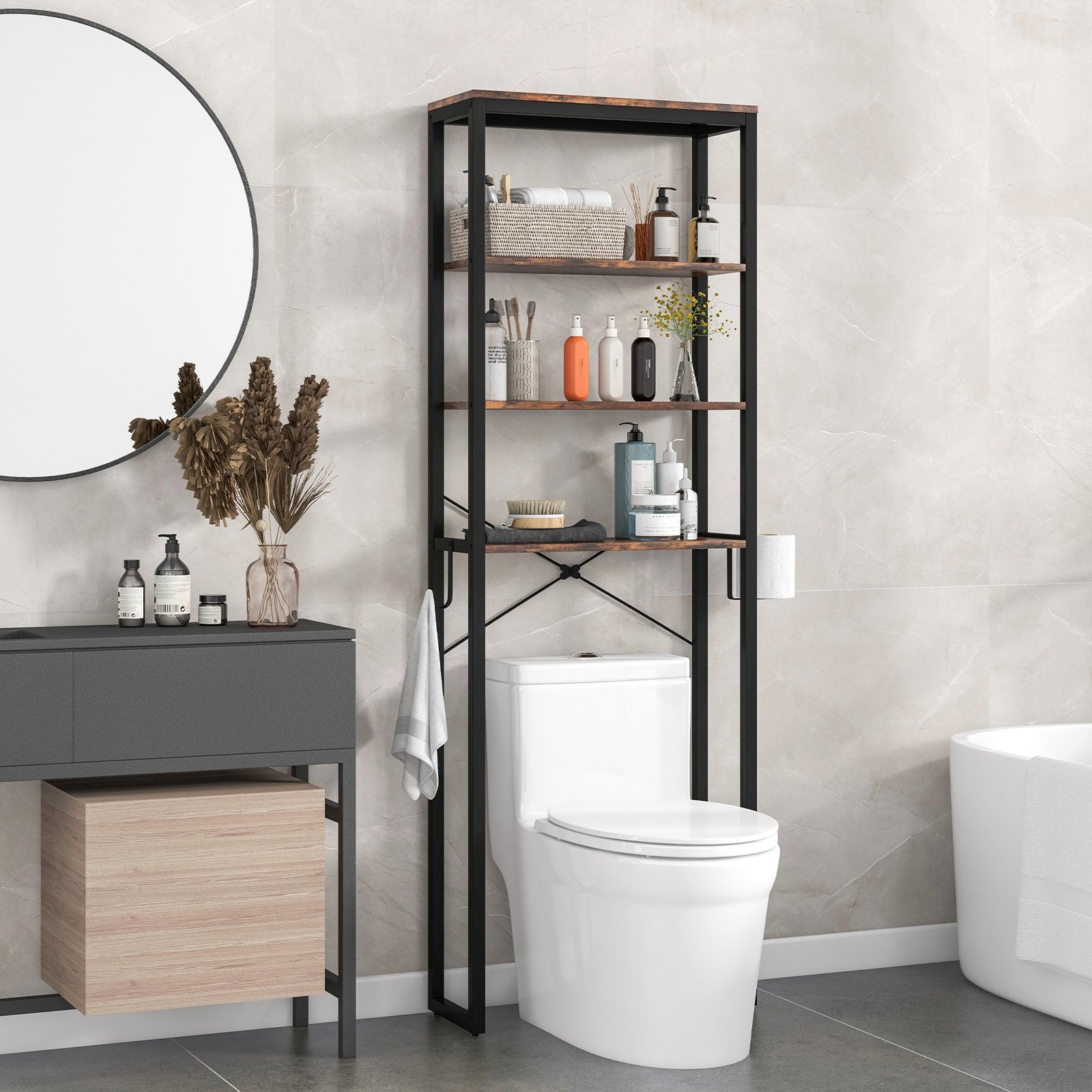 ● Large Storage Space: This over-the-toilet storage rack has four-tier open shelves which is convenient for you to store towels shampoo shower gel cosmetics and other bathroom necessities in an orderly manner. You don't have to bend over and get stuff under the sink anymore.