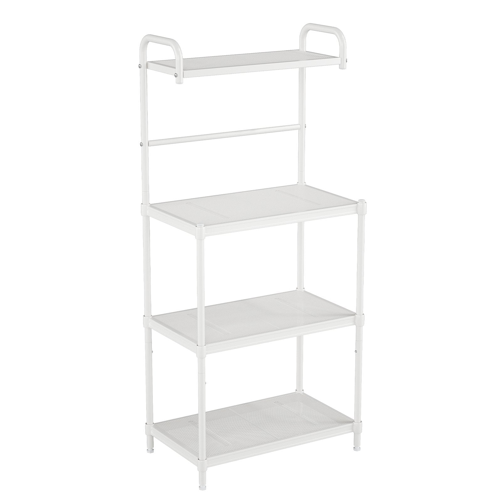 ● Powerful 4-Tier Storage: Comes with a total of 4 tiers 3 bottom shelves 1 top shelf and a bar on top. Adding hooks on the rod you can hold your cups rags etc depending on your individual needs. Other shelves are perfect for holding microwaves ovens and some of your other kitchenware or bits and pieces. Your kitchen will become tidy.