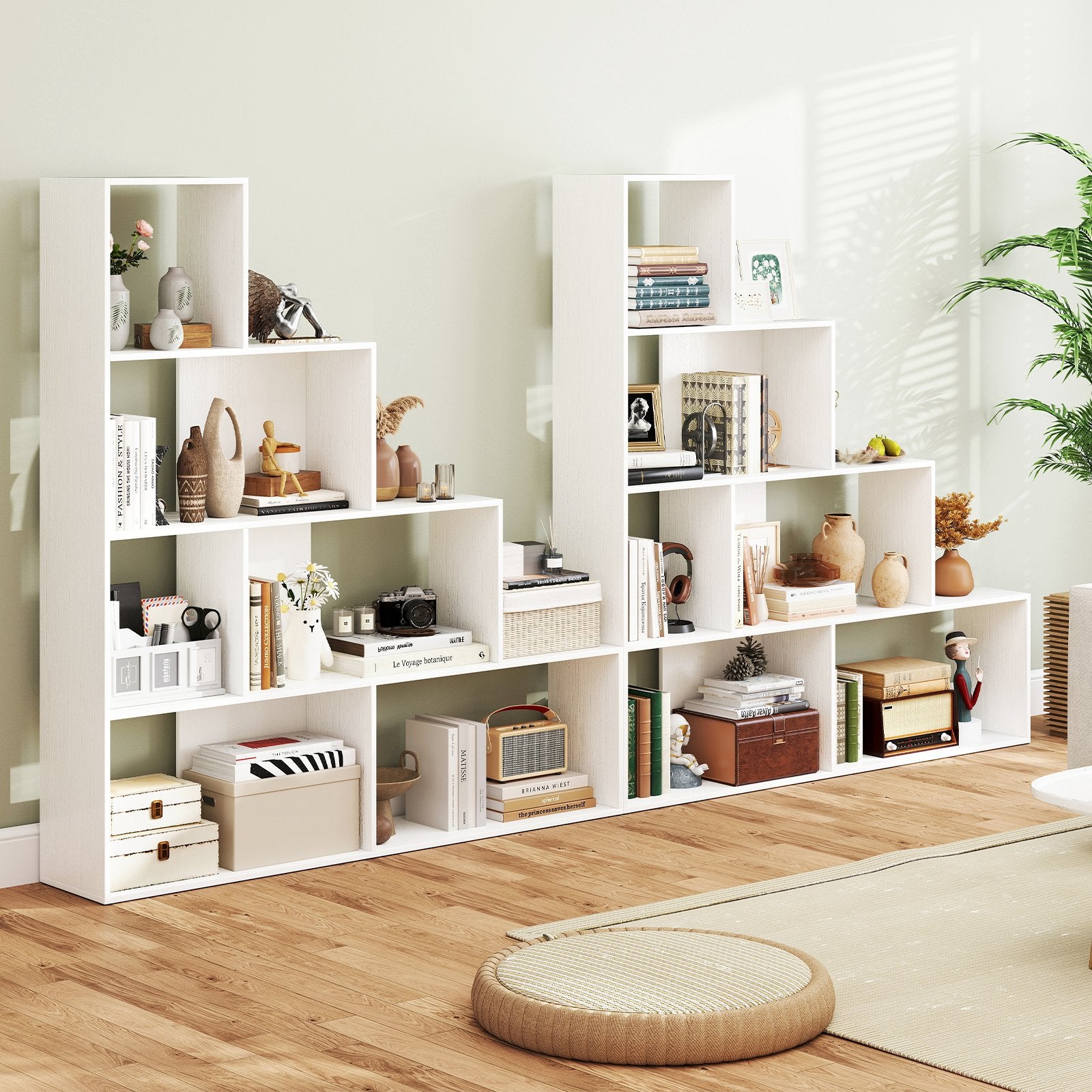 ● Open Storage & Display Space: Each tier smoothly transitions for easy access and organization. The 4-tier stepped bookshelf provides open storage across 6 cubes for books potted plants photo frames and storage boxes.