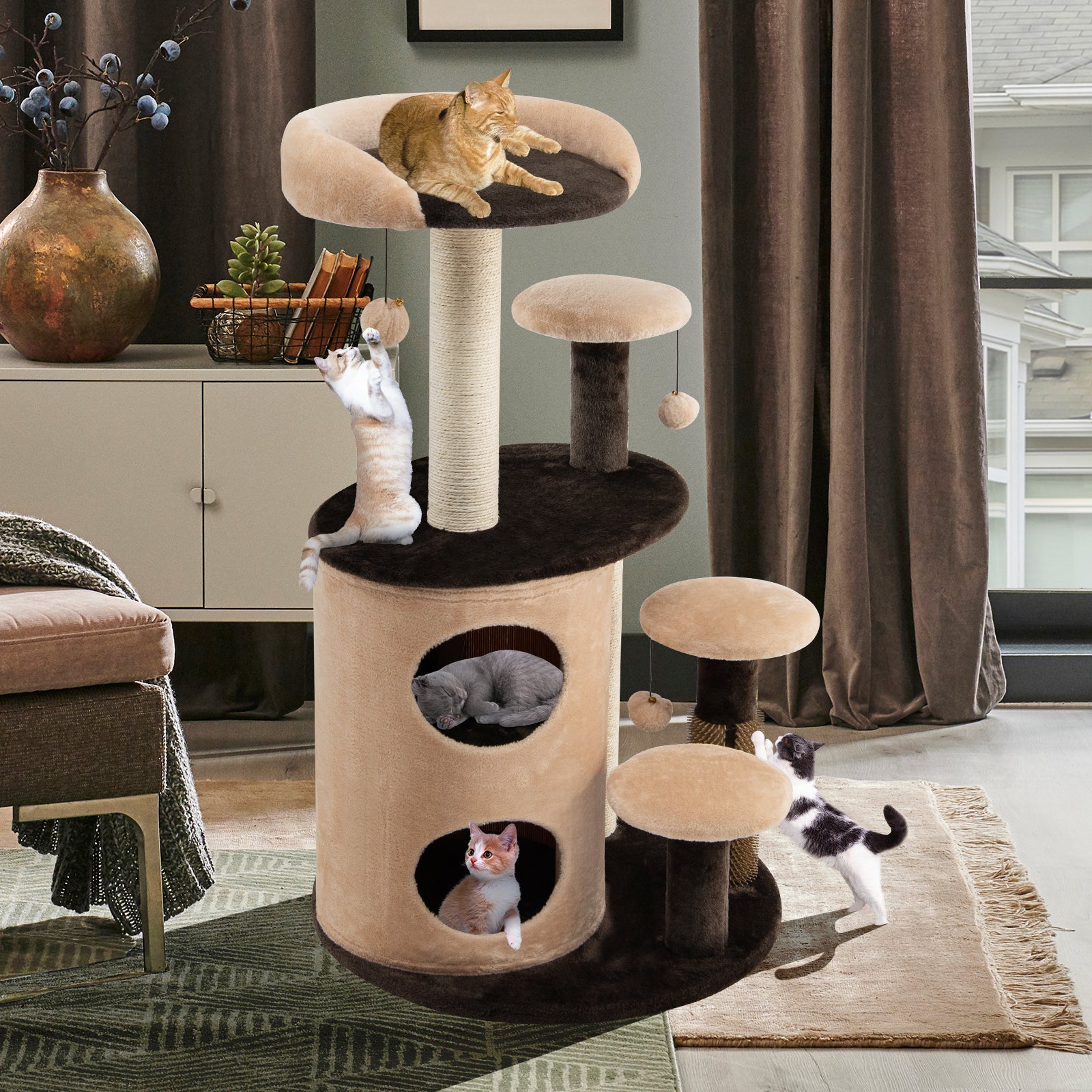 40 Inch Cat Tree Tower Multi-Level Activity Tree with 2-Tier Cat-Hole Condo-Brown
